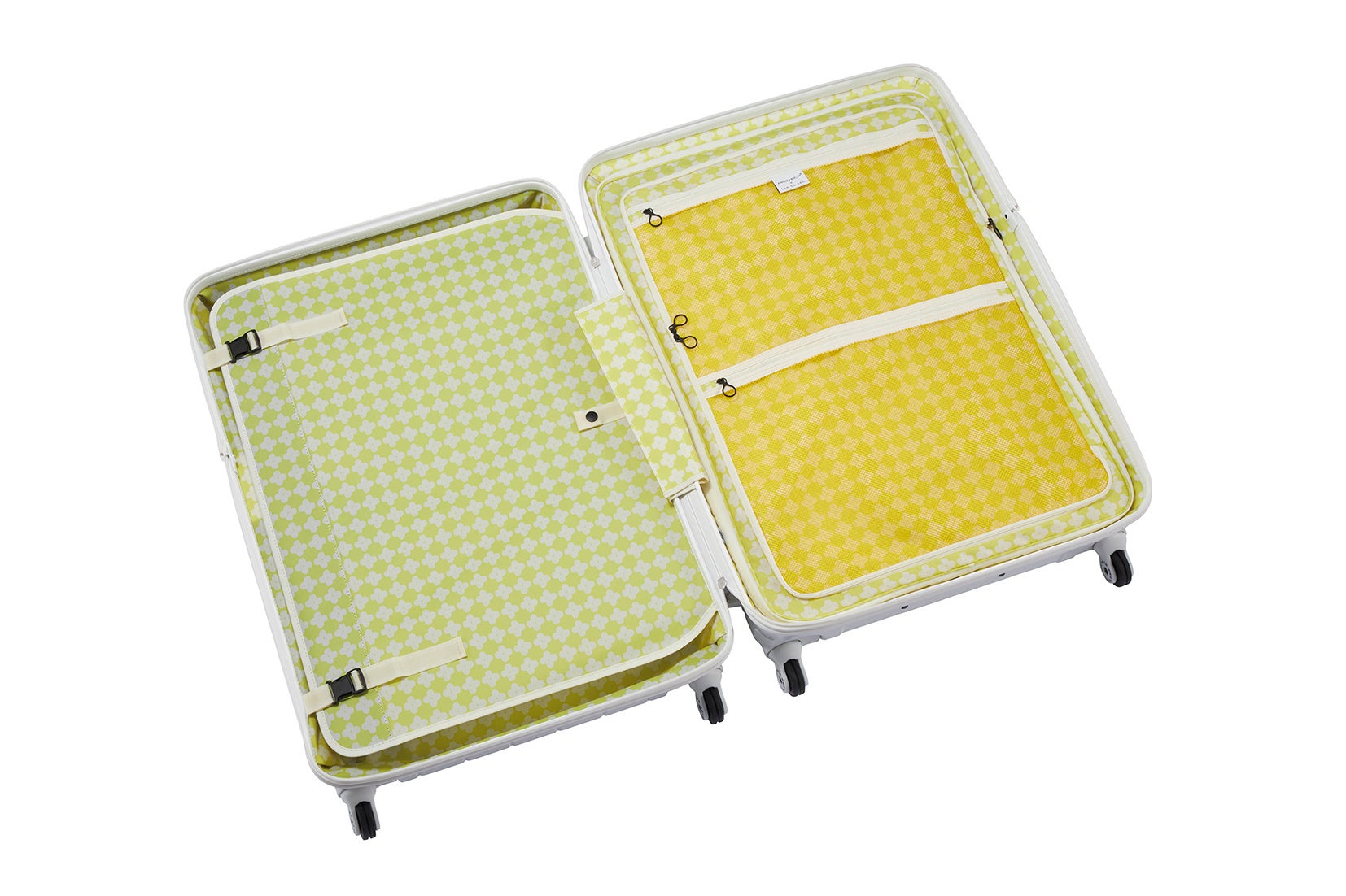 内装と付属のポケッタブルトートと内装に〈クロスフラワー〉模様を採用しました。クロス型の花モチーフが「360G4」のリブデザインとリンクします。