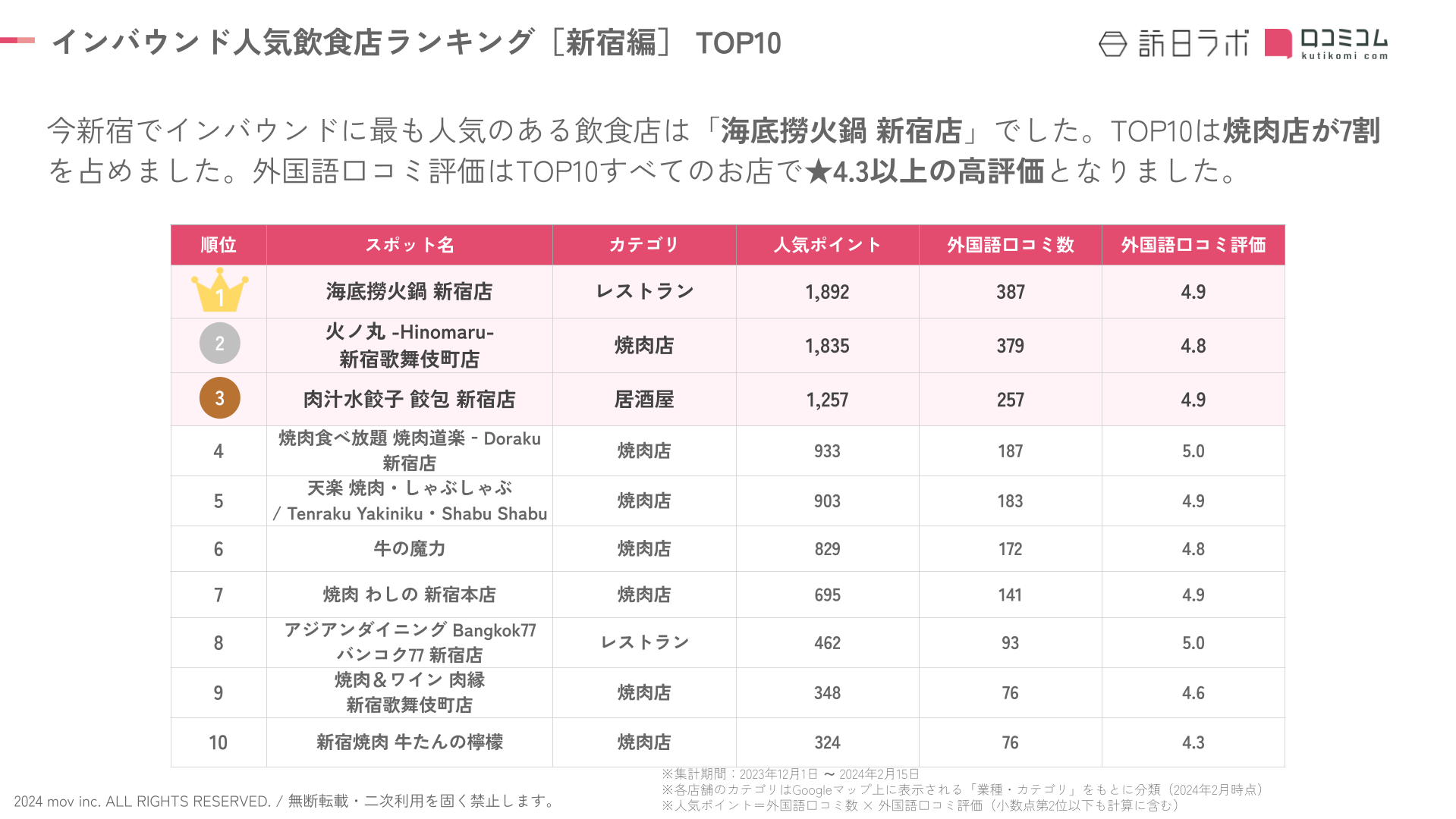 <インバウンド人気飲食店ランキング TOP10[新宿編]>
