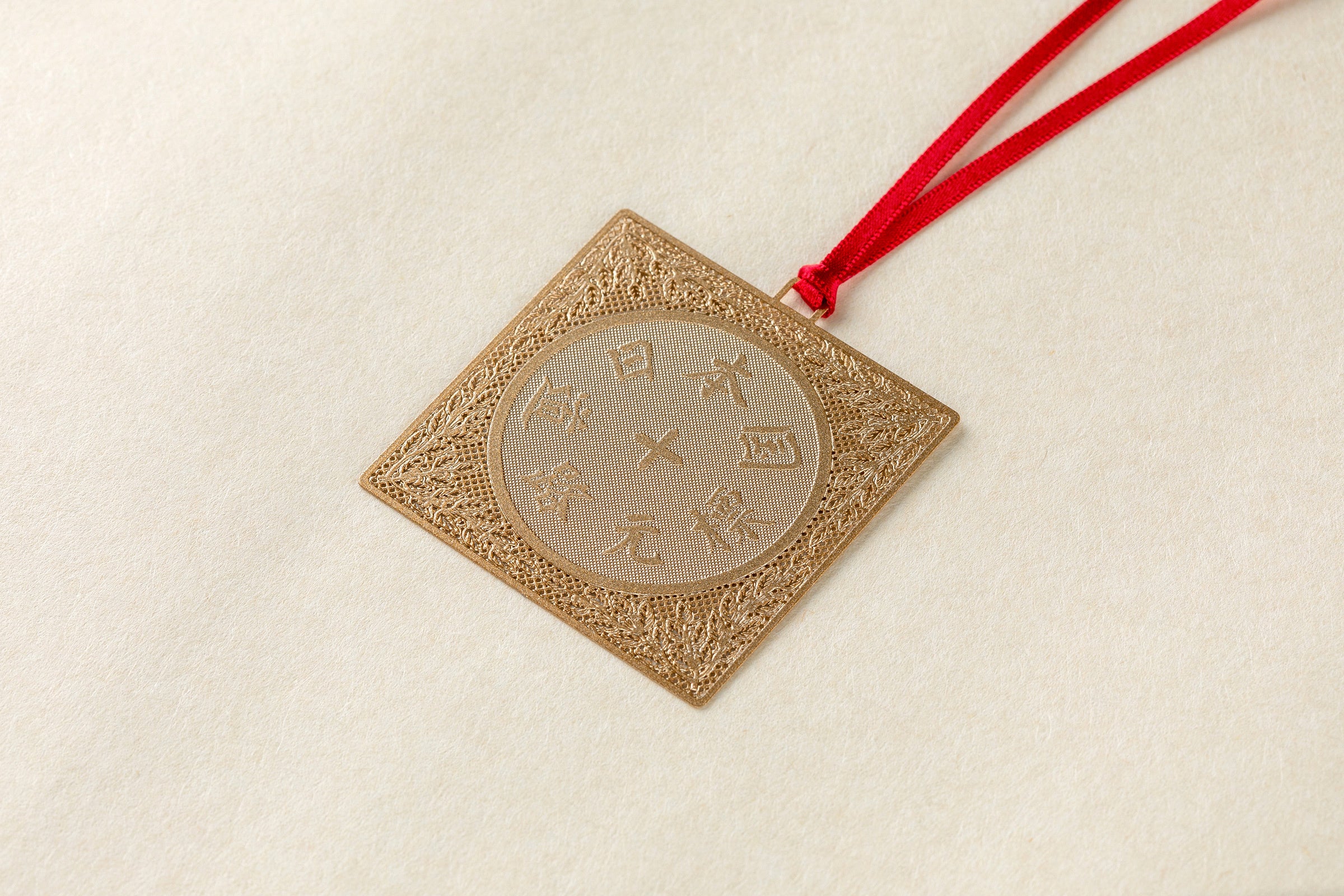 フォトエッジング加工した金属にメタリックゴールド塗装を施した、軽さが特長のしおりです。国内工場でレーザーカッティングされた透かしのデザインが美しく、長くお使いいただけるアイテムです。サイズ:縦約50×横約50mm