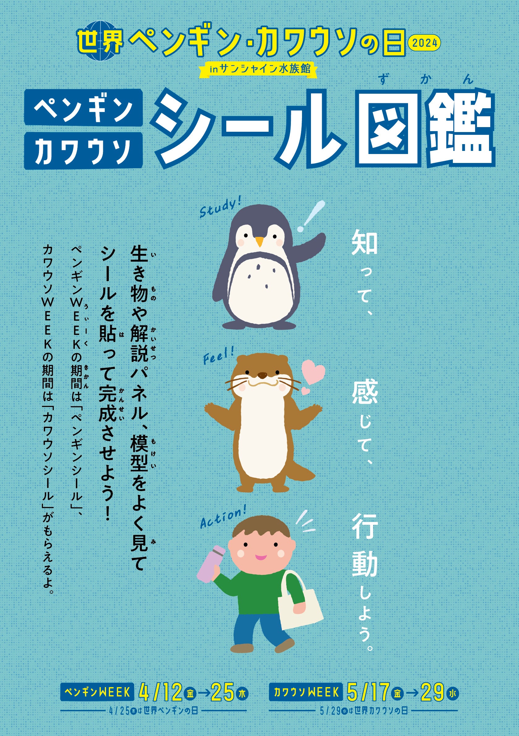 知って、感じて、行動しよう。ペンギン・カワウソのこと。*世界ペンギンの日:4月12日(金)~4月25日(木) 世界カワウソの日:5月17日(金)~5月29日(水)*