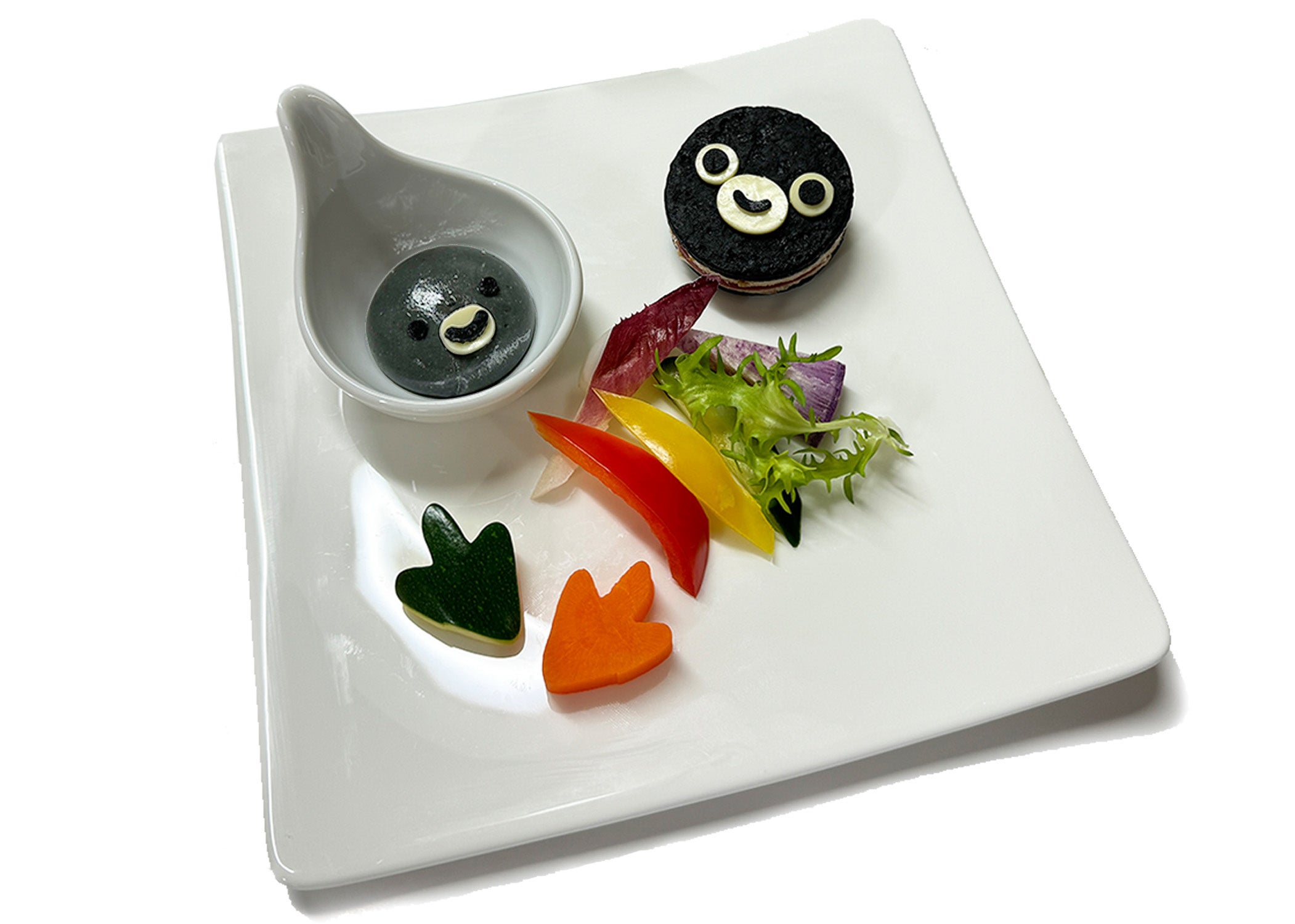 抹茶のケーキを柏餅風にし、ずんだ餡と生クリームのハーモニーが楽しめるSuicaペンギンのデザートは思わず