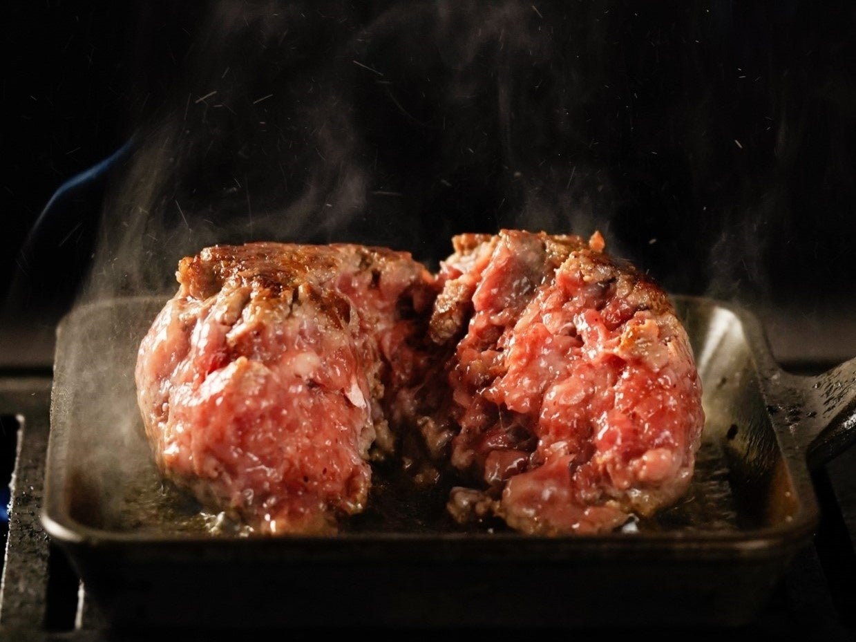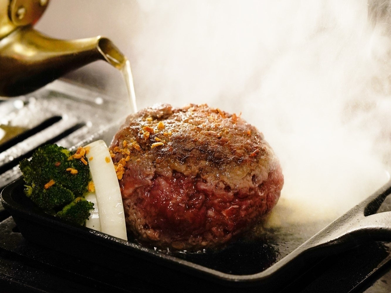 和牛100%を使用した最高品質のハンバーグを、あつあつの鉄板と一緒にご提供いたします。ランチ営業は予約<なし>でお楽しみいただけます。