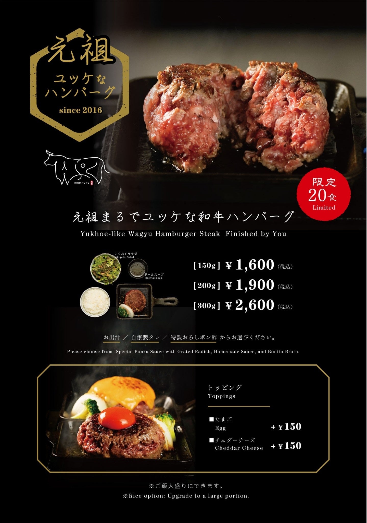 新メニュー「元祖まるでユッケな和牛ハンバーグ」