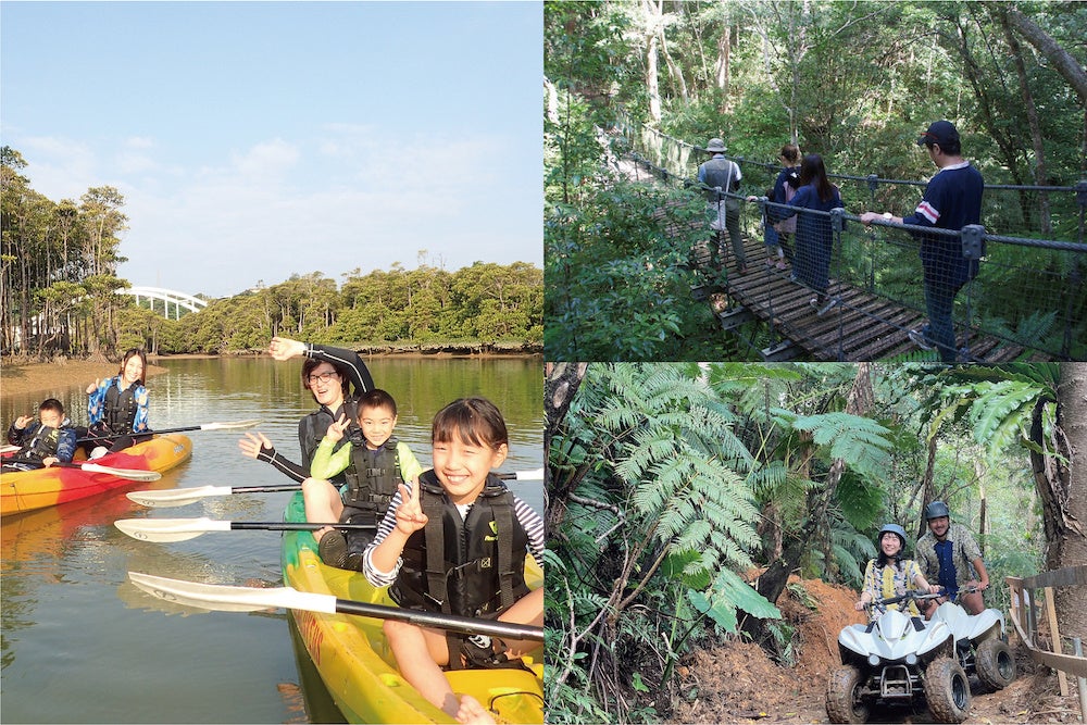 “ディスカバーやんばる”は、一人でも多くのお客様にやんばるに残された多くの自然を体験してもらいたい!という想いと、ツアーやアクティビティが楽しめるやんばるエリアのさらなる活性化を目的とし、体験プログラムの利用料金の最大20%のホテル館内利用券を還元することで、お得に体験と宿泊を楽しんでいただけるキャンペーンです。世界自然遺産に登録されたやんばるには、マングローブや原生林など素晴らしい自然が残っており、ツアーガイドから土地の成り立ちや歴史・文化、自然の様子などの話を聞きながらジャングルカヤックや、やんばるに広がる亜熱帯の森を散策できるネイチャ―トレイルガイドウォークを通して貴重な生き物や植物に出会うことができます。
