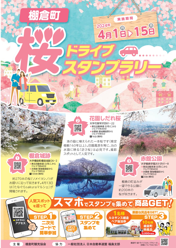 JAF(一般社団法人日本自動車連盟)福島支部(支部長 大沼 健弘)は、2024年4月1日(月)から4月15日(月)まで開催の『棚倉町ドライブスタンプラリー』(主催:棚倉町観光協会)に協力します。