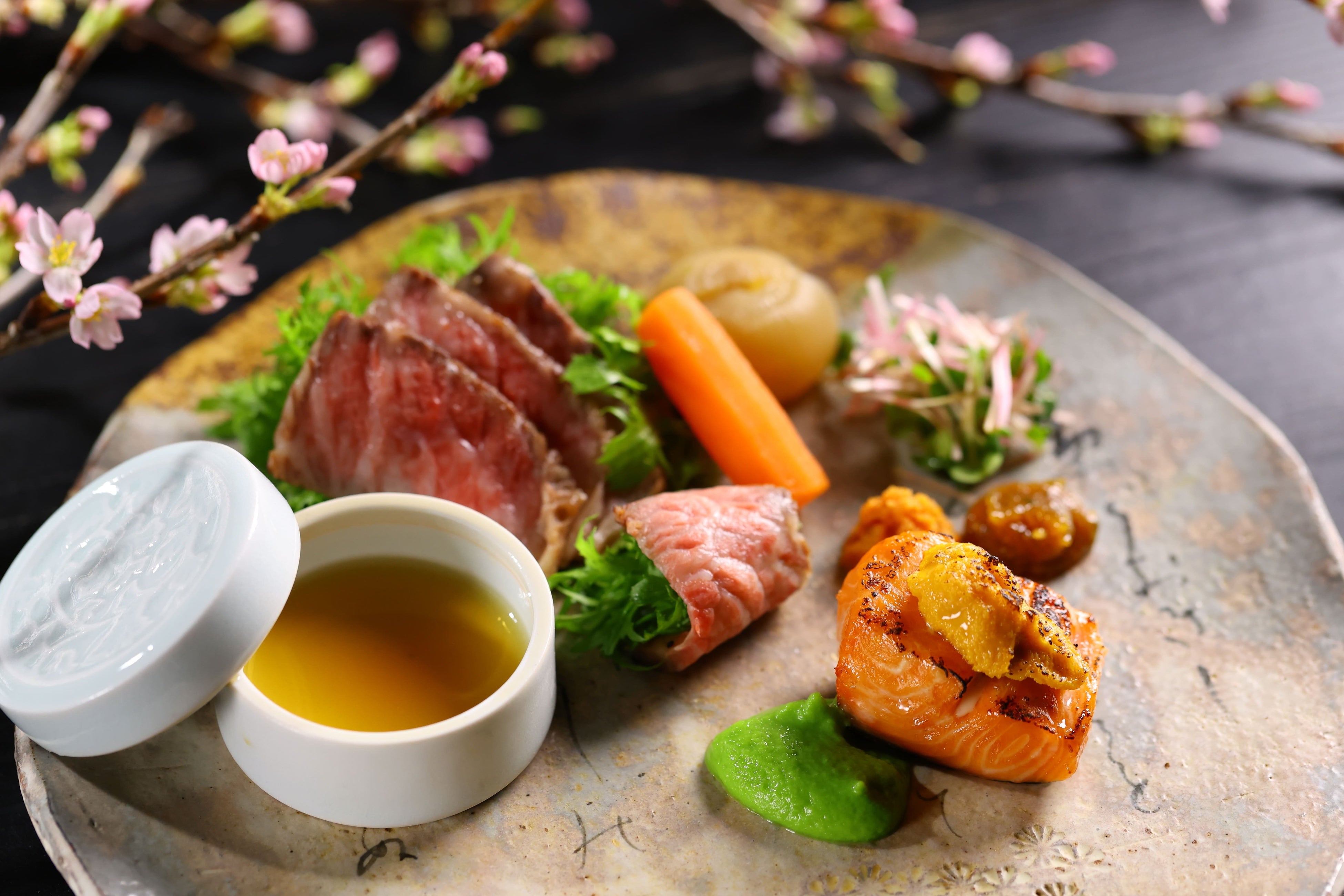 【奥湯河原温泉 海石榴つばき】2024年春お献立開始◆春宴ノ一献~満開の桜の下で開かれるお花見の宴席をイメージ◆