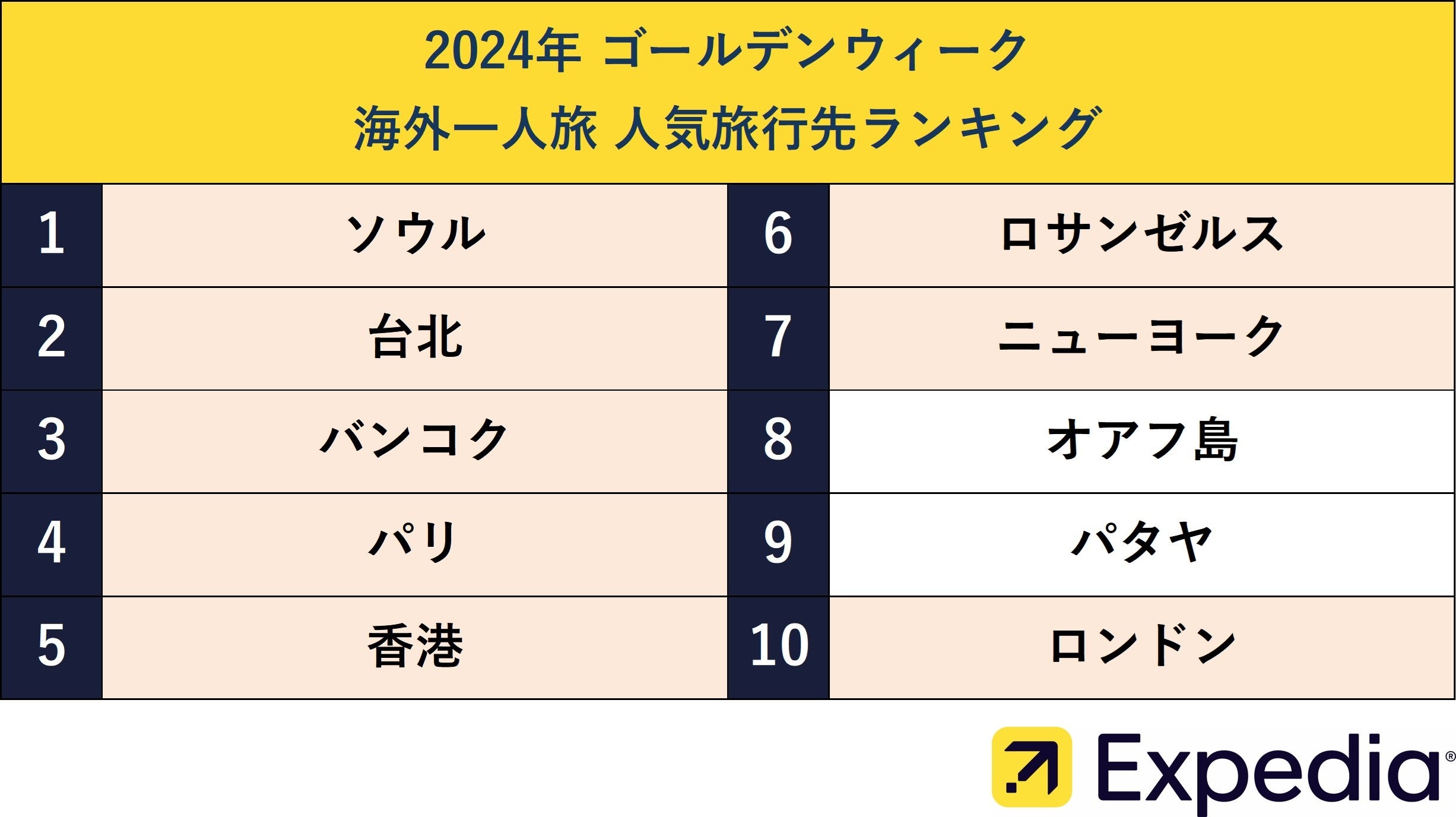 2024年ゴールデンウィーク、「一人旅」に人気の海外旅行先は「大都市」に集中