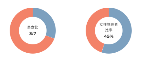 また、女性の管理職比率においても諸外国では概ね30%を超える一方、日本では12.9%と低い水準となっています。その中でもベルトラでは女性管理職比率(※3)も高く、国際的水準を誇っています。今後もベルトラは、女性リーダーの活躍を支える職場環境の整備を推進してまいります。