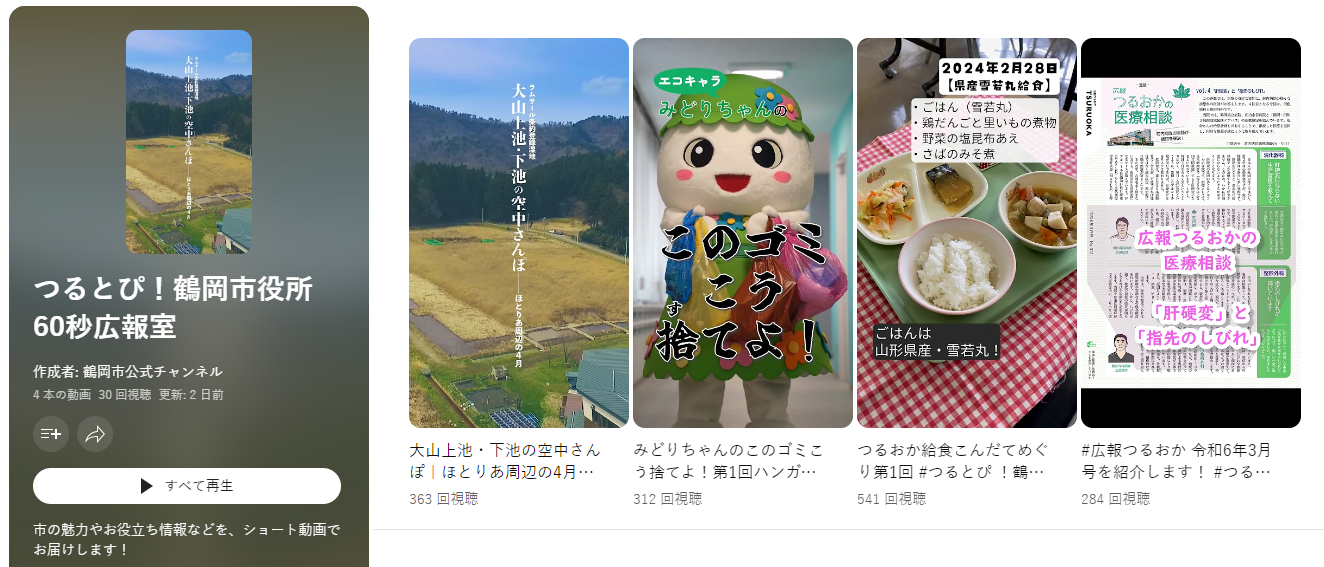 2024年3月から、鶴岡市役所の若手職員がお手製のショート動画をYoutubeに配信。