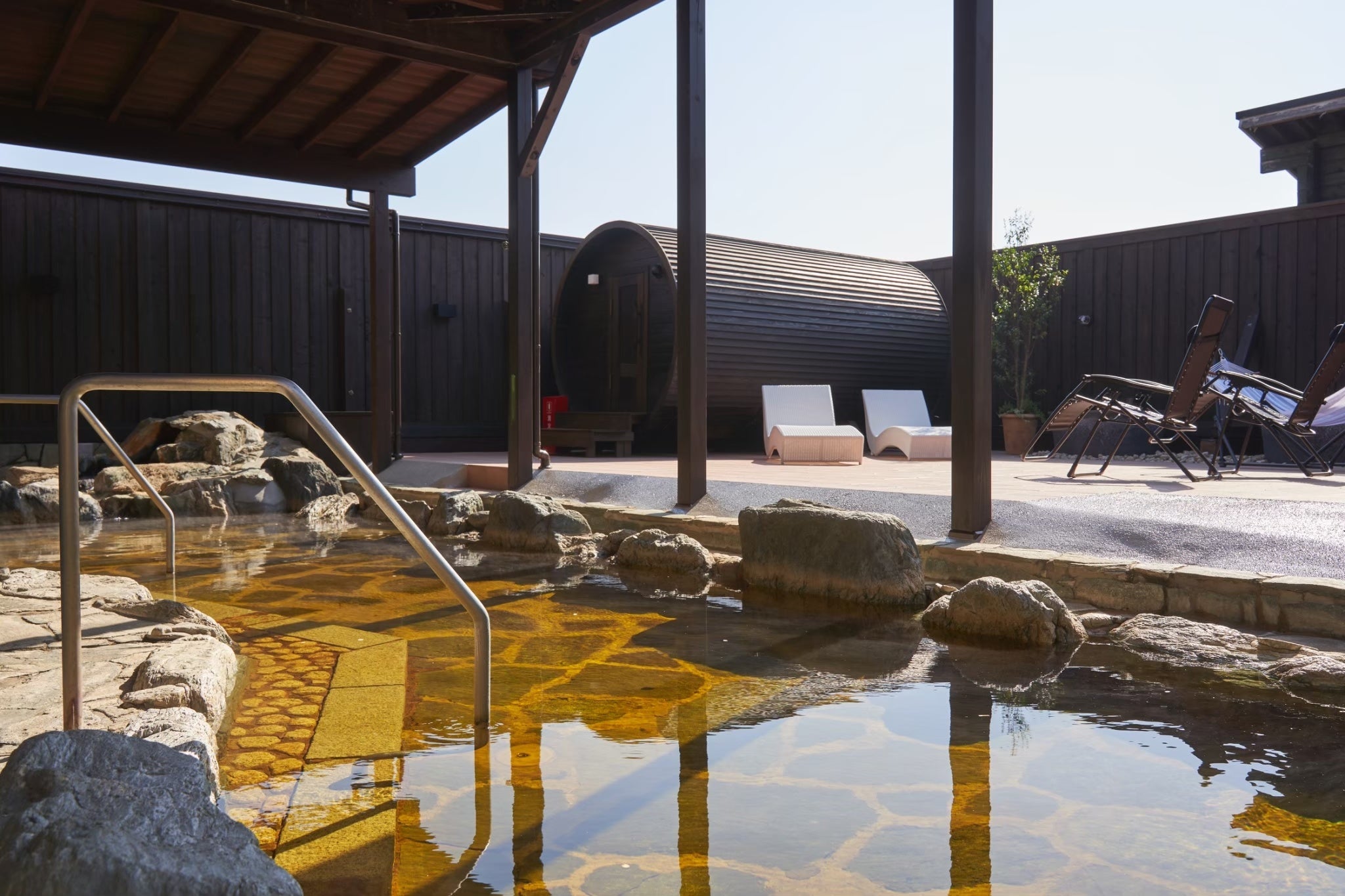 多くのご要望に応え、本年4月1日(月)より併設の、天然温泉が楽しめる温浴施設「おふろcaféかりんの湯」入館料がフリータイム無料(5名様まで・館内着付き)、さらにTHE FARM各施設宿泊のレイトチェックアウト(1時間)が可能になるなど、特典内容がパワーアップします。