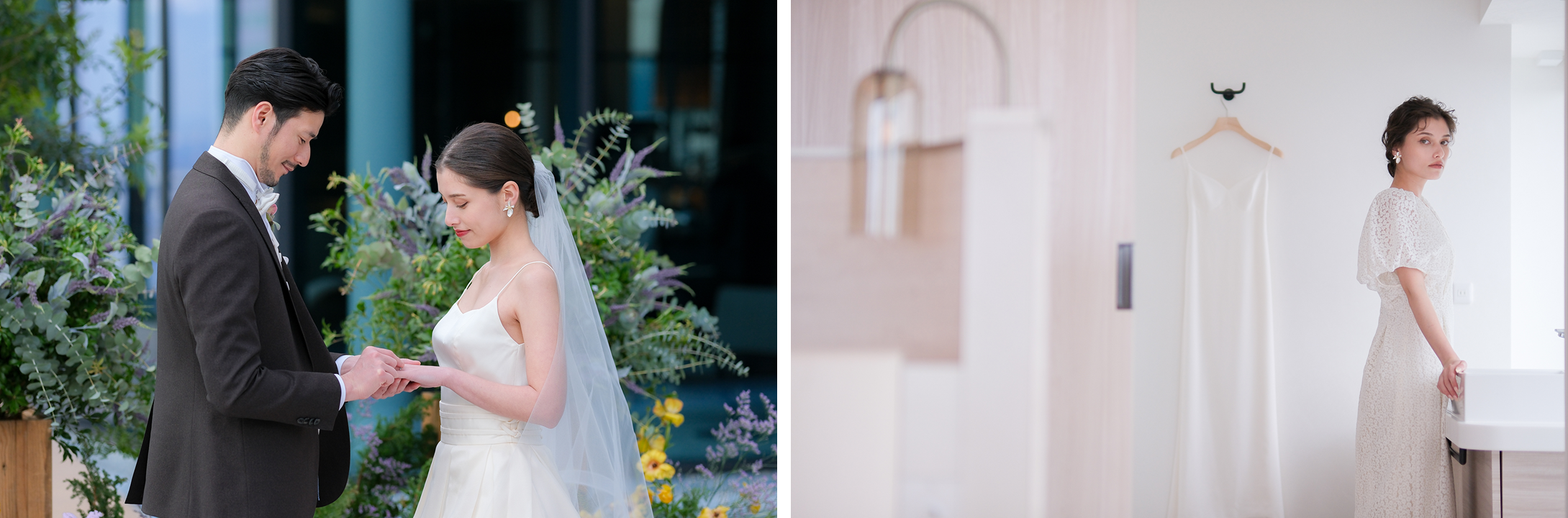 派手なことはしなくていい。わたしたちらしくドレスアップして、ふたりだけで誓い合い、お部屋でゆっくり過ごすウェディング。写真を残すだけのフォト・ウェディングではなく小さな人前式を執り行うなど、大切な日を大切な人と寛いで過ごす時間をご提案します。