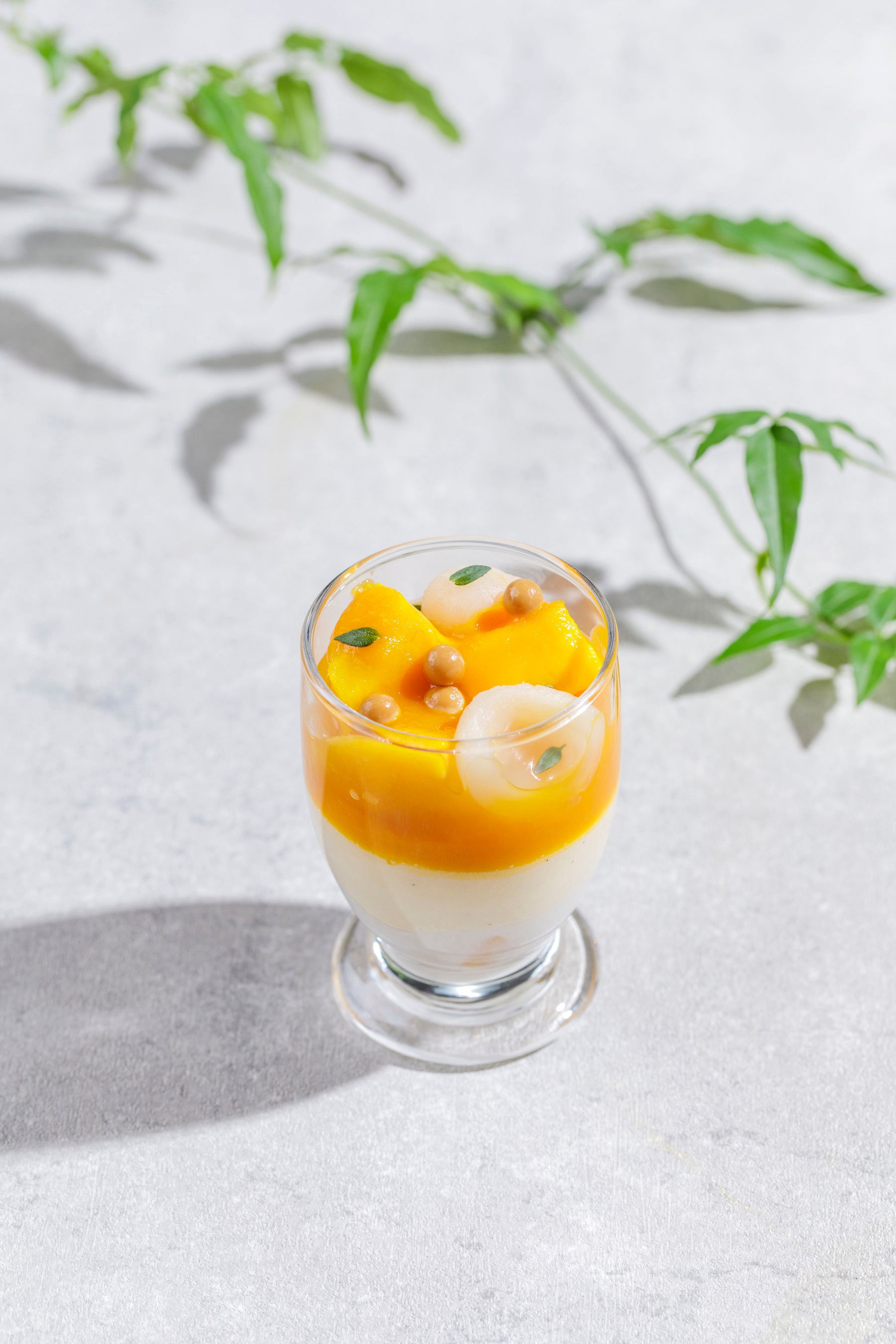 フレッシュなマンゴーとロンガンライチの爽やかな風味に合わせたディプロマットクリームの滑らかで軽い食感が楽しめるトライフルです。