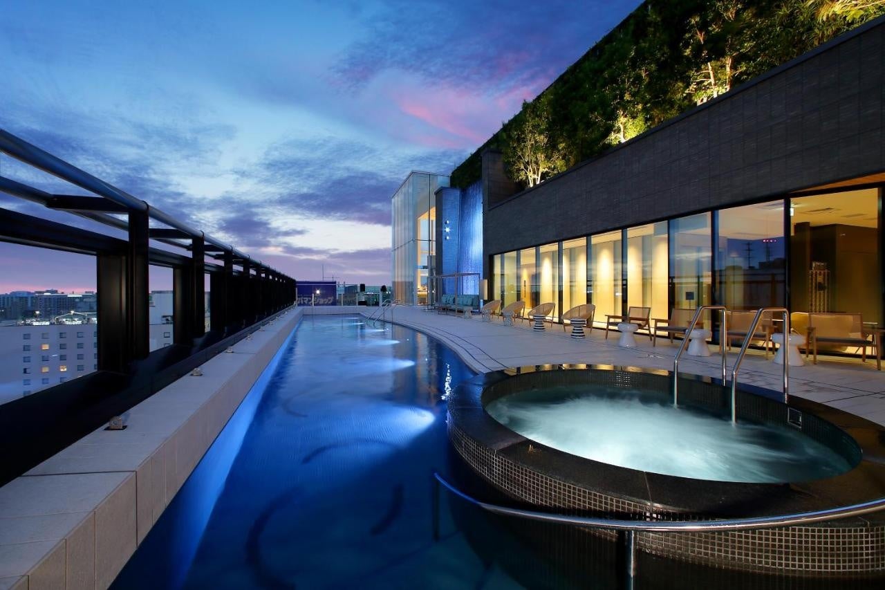 「都ホテル 博多」は、博多駅直結の好立地に位置する、スマートラグジュアリーホテルです。天然温泉のプール付き屋上スパや、ジェットバス、ミニプールなどで心ゆくまでリラックスした時間を過ごすことができます。プールサイドで、ドリンクや軽食を楽しむこともできます。また、ホテルのレストランでは、九州の食材を活かした新しい食体験など、都心のリゾートを楽しむことができます。