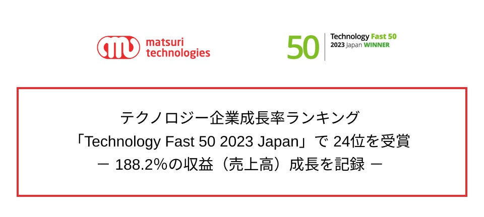 matsuri technologies株式会社 テクノロジー企業成長率ランキング「Technology Fast 50 2023 Japan」で24位を受賞-188.2%の収益(売上高)成長を記録-
