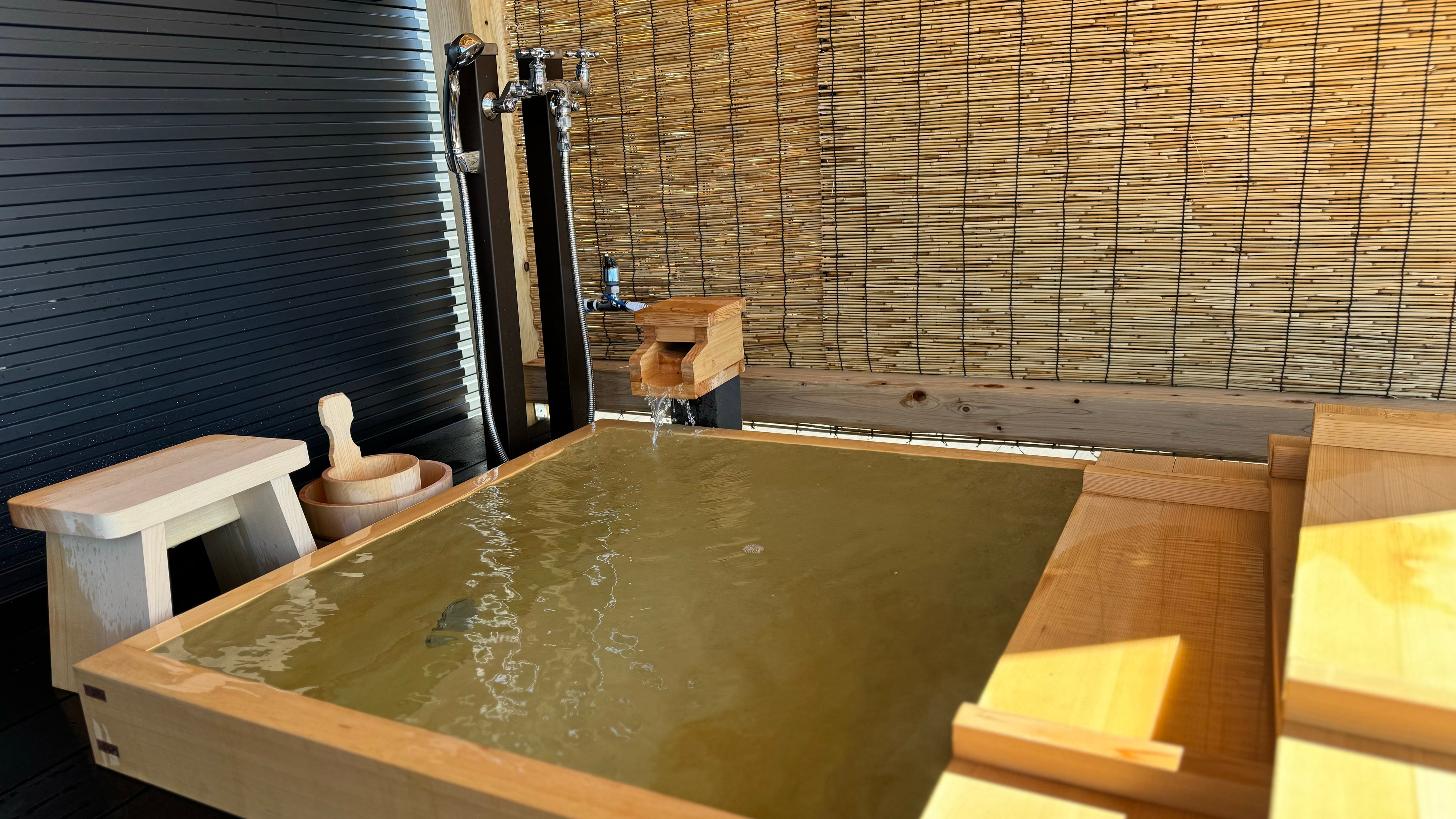 自然に包まれたロケーションを生かし、ウッドデッキには檜の露天風呂をご用意。