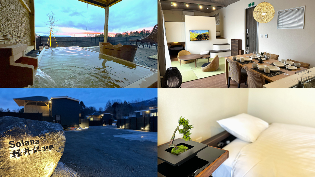 Solana軽井沢別邸は、いままでのコンセプトとは一味違い和モダンを意識した高級感のある作りとなっております。1棟毎に視線をさえぎるフェンスで区切られているため、他のゲストを気にすることなく、大切な人と素敵な時間をお過ごしいただけます。