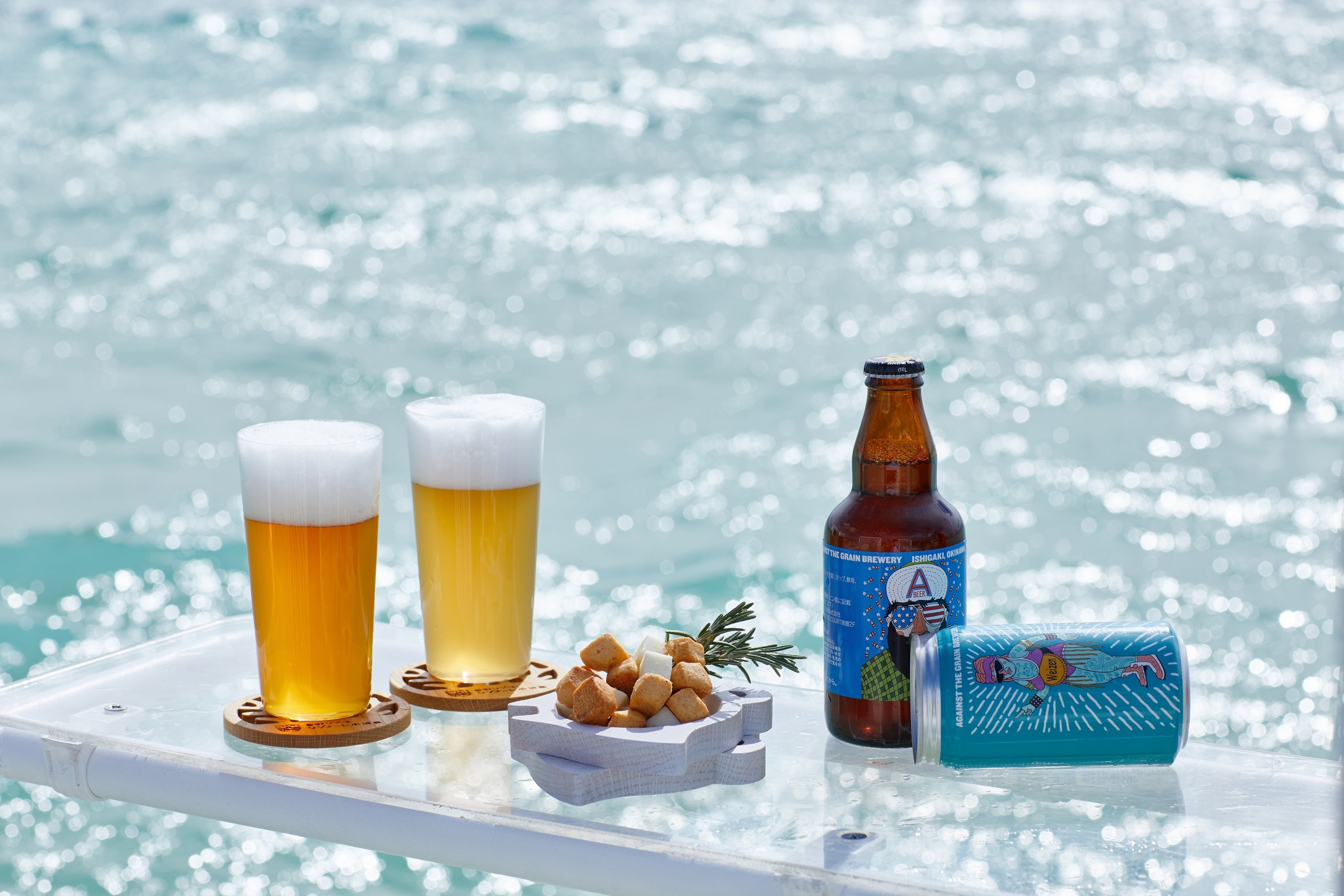 本イベントで提供する生ビールは、八重山諸島の気候風土に合ったクラフトビールを製造している「石垣島ビール工房株式会社」のものです。フルーティーな香りが広がる「石垣島ヴァイツェン」と、苦みが少なくライトな仕上がりが特徴の「石垣島ア・ビア」の2種類の生ビールを販売します。また生ビールのお供には、胡椒やバジルなど地元の素材を活かした「Manta Frog ISHIGAKIJIMA COOKIE」のチーズサブレを用意。開放的な海上の滞在に相応しい、地元の魅力に溢れた食体験です。