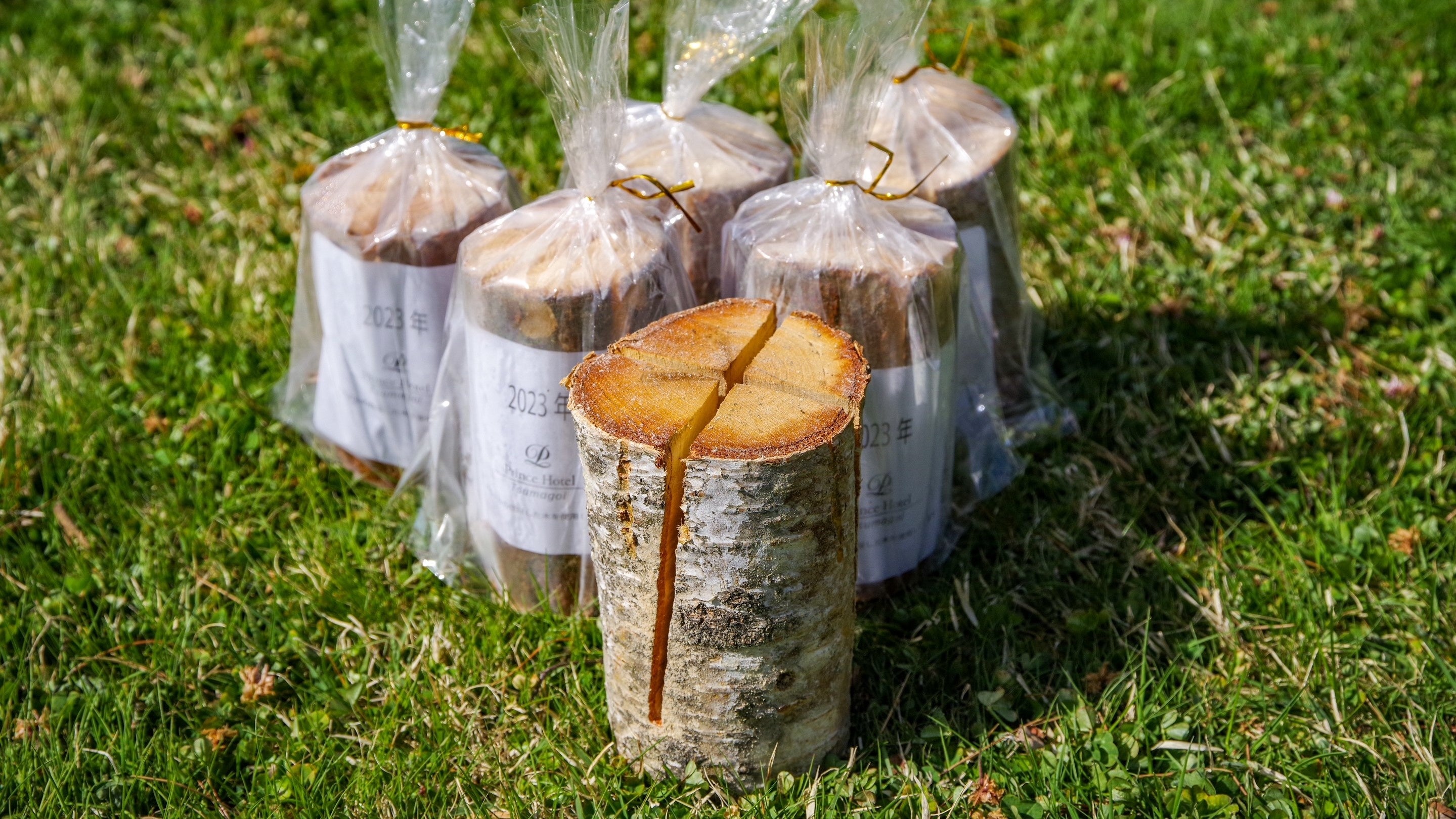 ゴールデンウィーク限定ファミリー応援プランにてご宿泊されたお子さま(希望者)にホテルスタッフ手作りのミニスエーデントーチをプレゼントいたします。ホテル敷地内から出る間伐材を利用しホテルスタッフが一つ一つ切り出して作りました。ご自宅でトーチの炎を囲い、ご旅行後の嬬恋高原での思い出話しをお楽しみください。