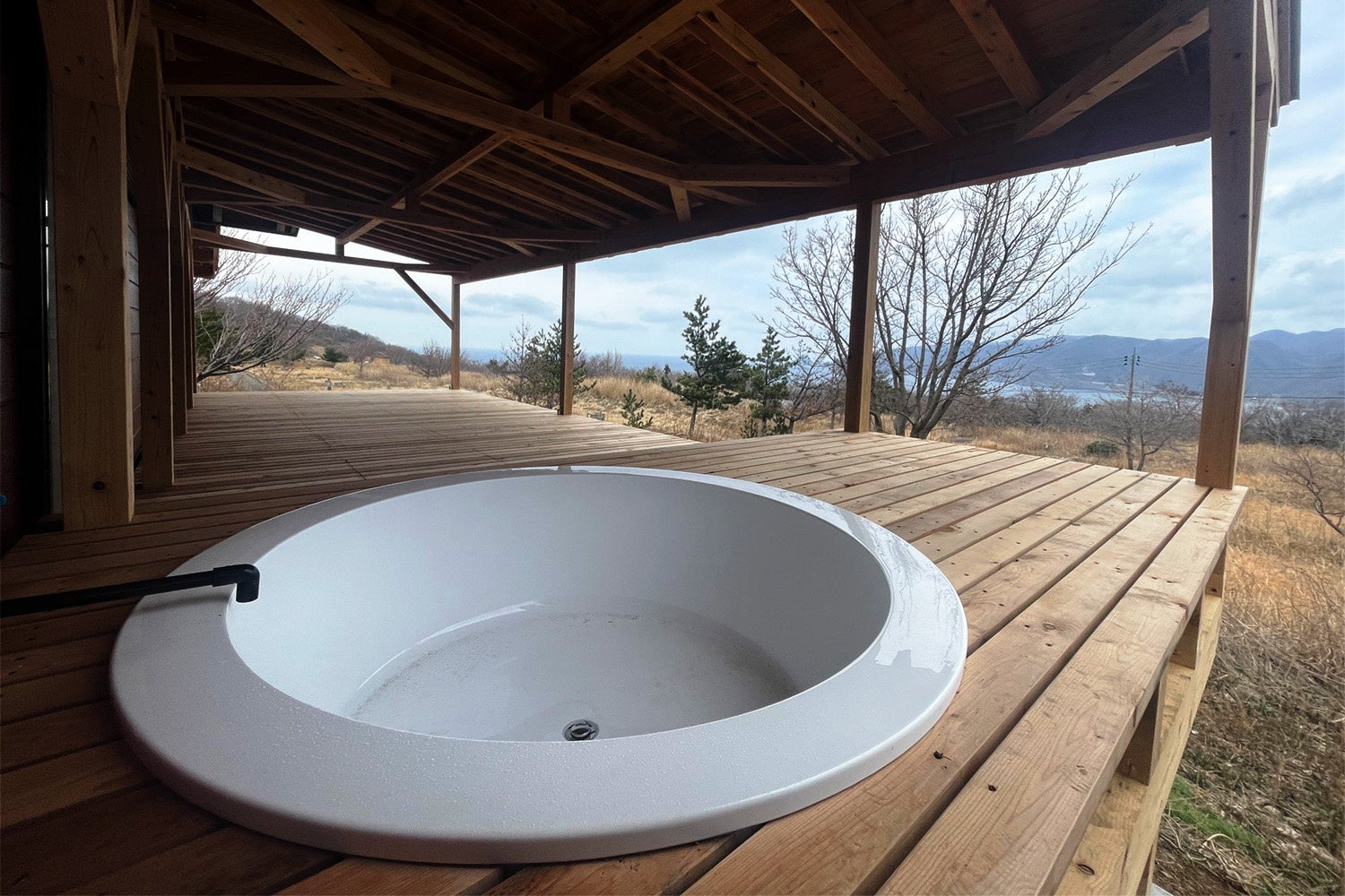 また、サウナの外には水風呂併設のデッキスペースがあり、海を見下ろしながらの外気浴が堪能できます。
