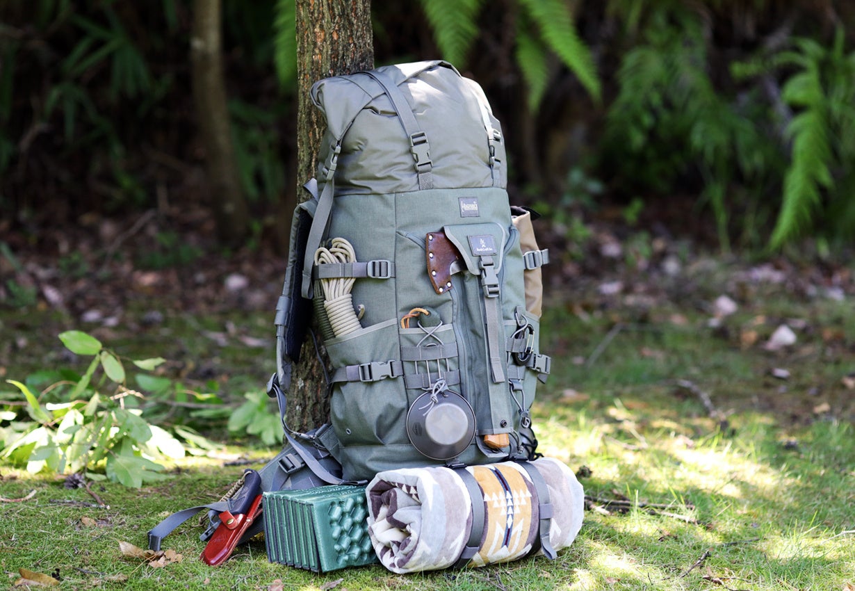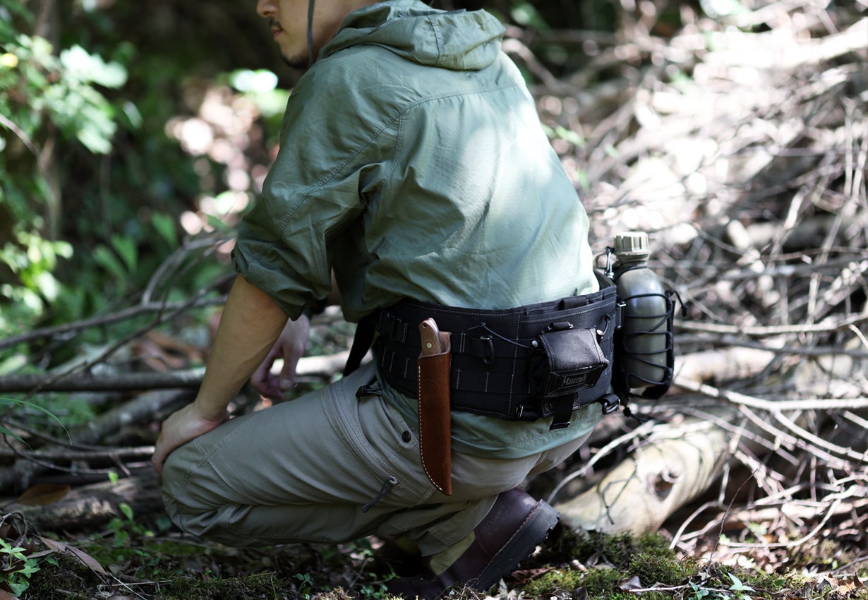 デザインはブッシュクラフトに特化したオリジナルギアを開発するブッシュクラフト株式会社が担当。正面のアックスホルダーやジッパーアクセス、モールシステムに対応した取り外し可能なパッドベルトなど、専門企業ならではの豊富な知識と経験を基に、多数のアイデアを盛り込んだデザインに仕上がっています。