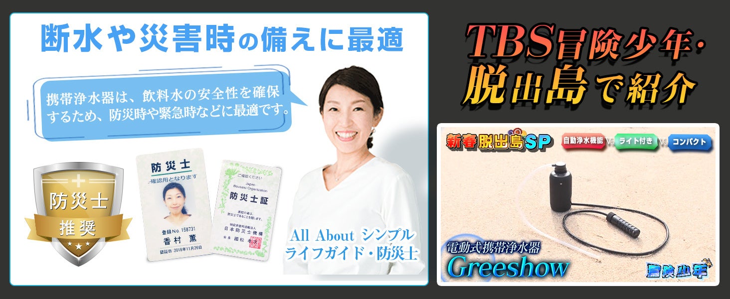 TBS系で放送した携帯浄水器【春祭りに大幅値下げ~Greeshow防災浄水器-特典キャンペーンを3月29日9時から開催し】