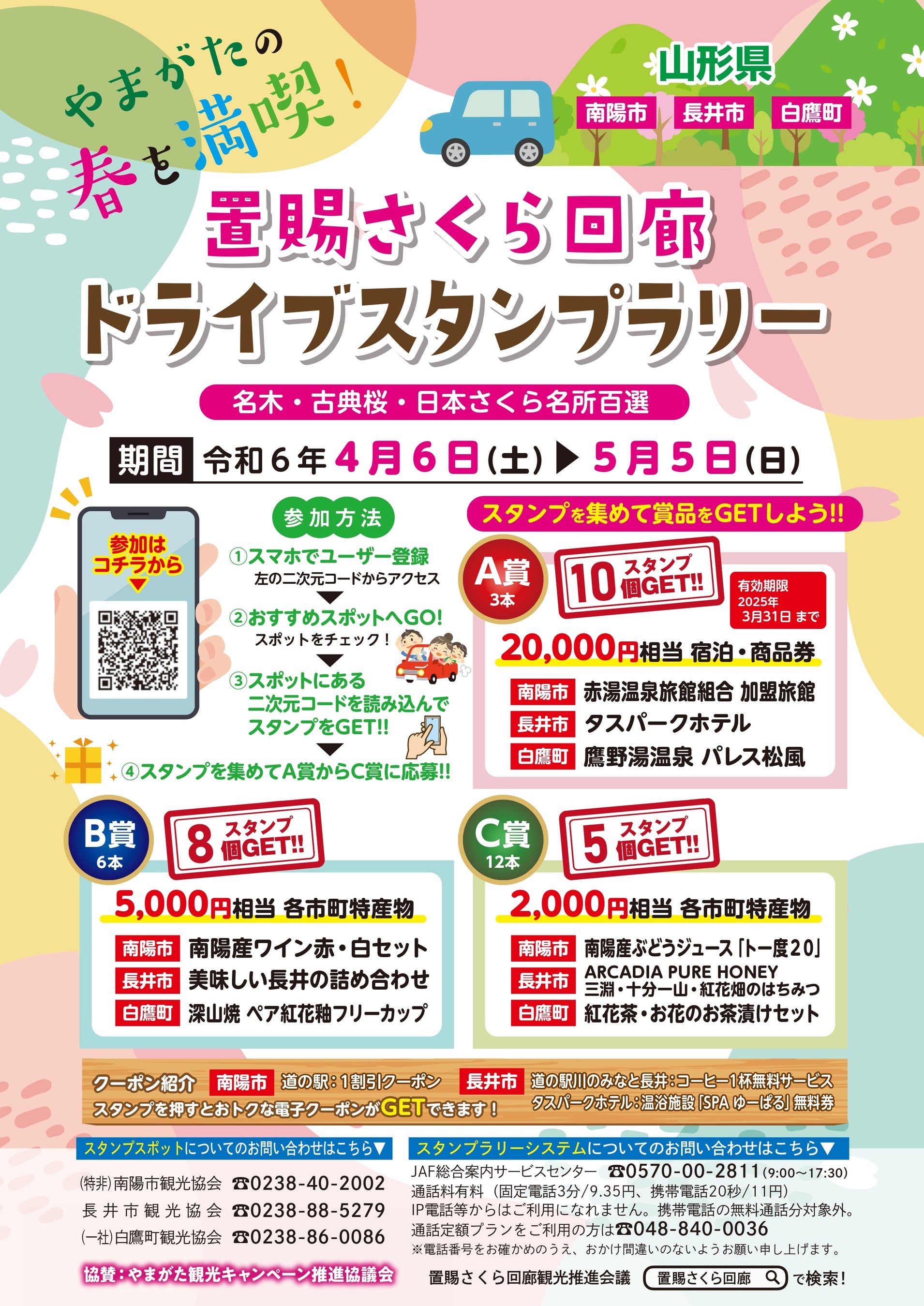 このスタンプラリーは置賜地域にある桜の名所などを巡るスタンプラリーで、JAF会員の方、会員でない方を問わずどなたでも参加することができます。