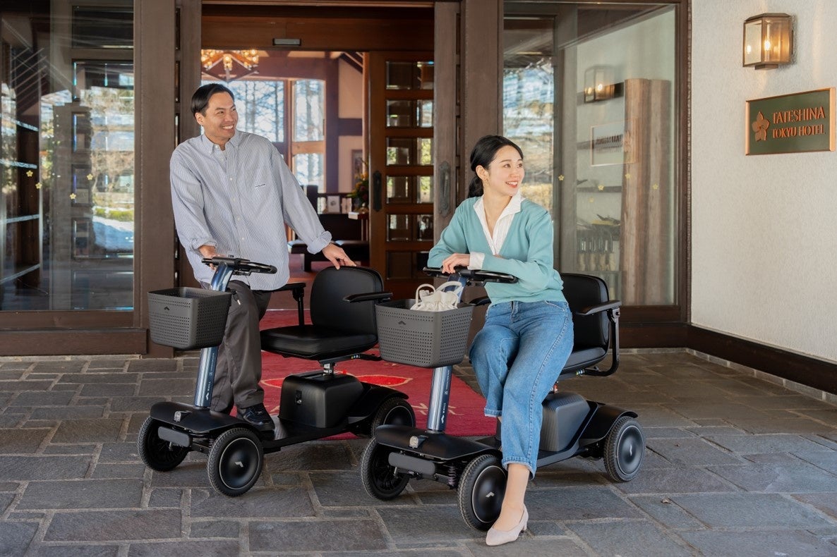 蓼科東急ホテルでは、老若男女問わず誰もが気兼ねなく旅行を楽しめる「ユニバーサルツーリズム」が観光業界で広がりつつあるなか、春夏の行楽シーズンを前に、WHILLの4輪スクータータイプ「WHILL Model S」を 2 台導入し、広大な敷地内に点在する自然や施設などを自由に巡れる移動サービスをホテル宿泊客へ提供します。