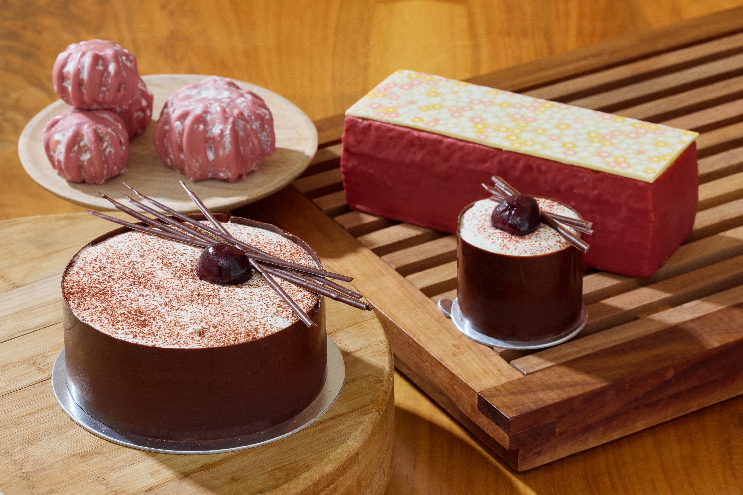 「フォレノワール」「プチフォレノワール」は、グリオットチェリーが入ったチョコレートのスポンジケーキとムースの層に、チェリーのジュレをサンドした初夏におすすめのケーキです。程よい酸味の国産チェリーとほろ苦いダークチョコレート、甘さ控えめのチョコレートムースが絶妙なハーモニーを奏でます。「チェリーとピスタチオのシュークリーム」は、ナッツの女王ピスタチオの芳醇なコクと豊かで洗練された香りによって、チェリーの甘く酸味のある味わいを最大限に引き出した逸品。チェリー風味のシャンティクリームとピスタチオプラリネ、チェリーのジュレをシュー生地で包み、レッドチョコレートでコーティングしました。暑さ疲れを癒す旬のチェリーをふんだんに使用したスイーツを、この機会にぜひご堪能ください。