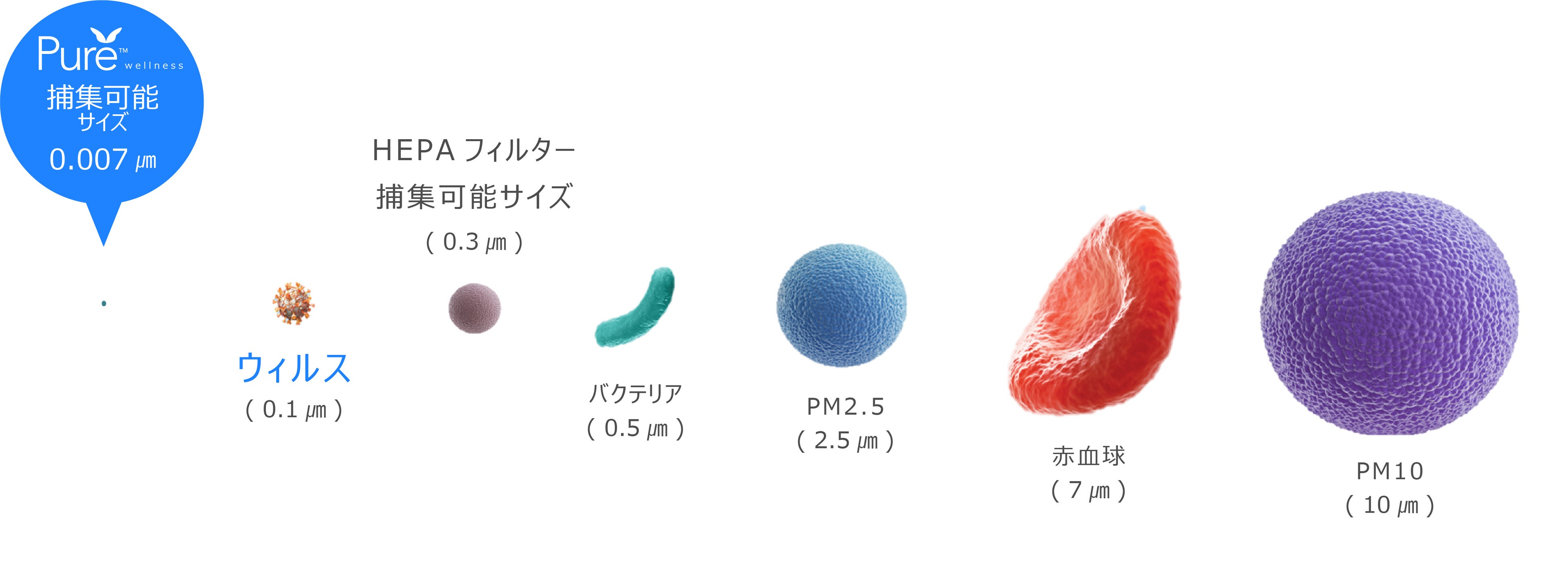 インフルエンザウイルス:0.08-0.12 ㎛