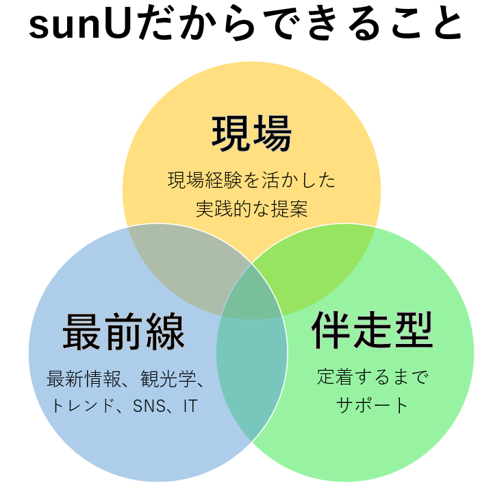 株式会社sunU(本社:東京都江東区、代表取締役:伊東優)は、リラクゼーションを核とした独自のサービスや現場主導の実働型支援を通して「世界一、働く方々に寄り添った旅館支援」を目指します。