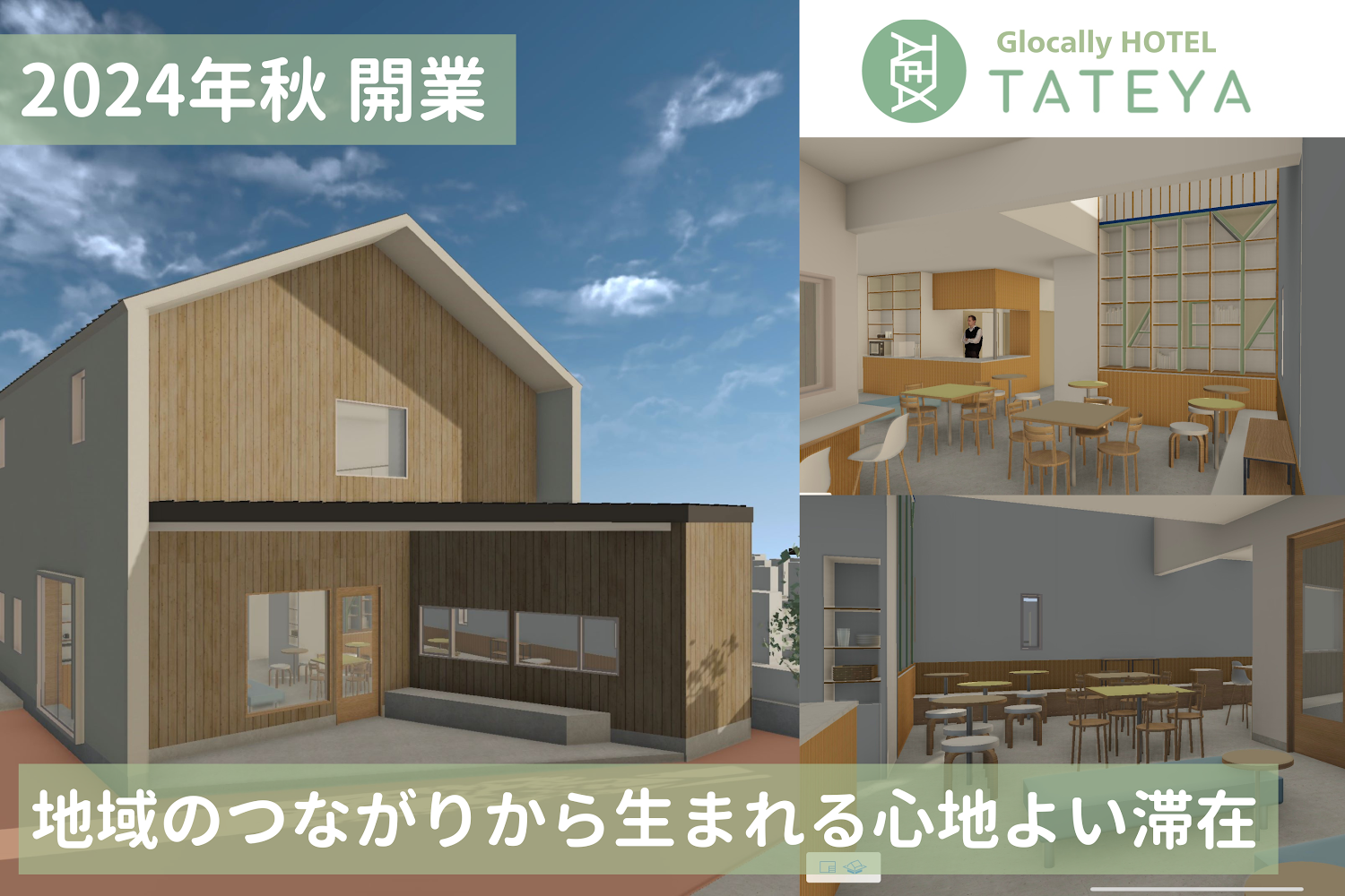 TATEYAプロジェクトは進め始め、今まで出会うキッカケのなかった人たちとご縁をたくさんいただいています。中津を体感できるホテルを作りたい!という想いから、中津市の課題、そして地元事業者の想いを聞くことで、TATEYAを「泊まれる交流場にしたい」という夢に変わりました。自分達だけでは出来ないことも、外の視点や周りの協力に進めていけることを強く感じています。だからこそ地域だけにこだわるのでなく、地域内外のプレイヤーのアイディア、知恵、力を合わせて地域の新たな価値を作る。TATEYAを通じて出会った人たちが繋がり、そして進んでいく。そのような夢を描いています。