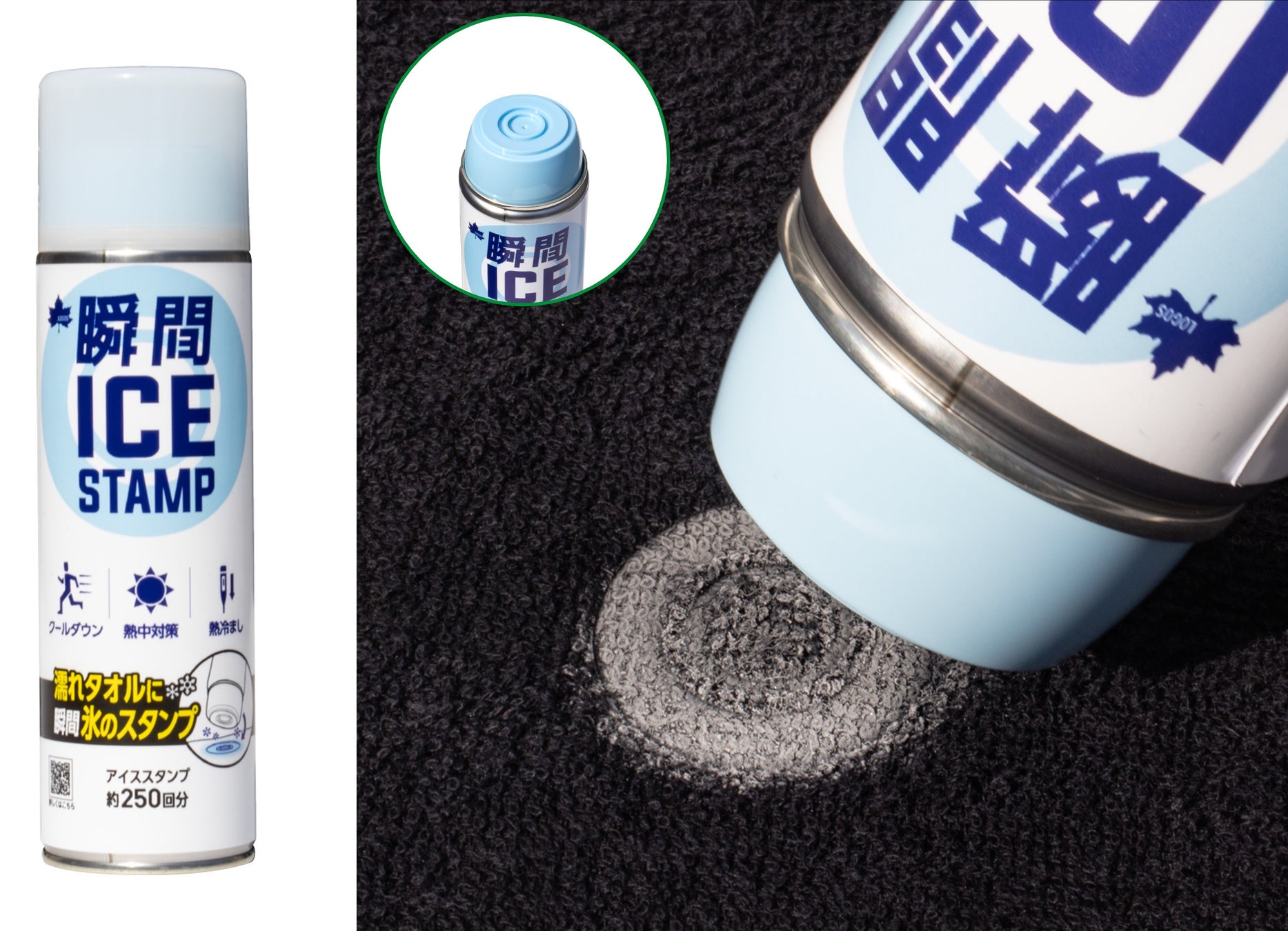 スタンプ式を採用した、濡れタオルを瞬時に凍らせることのできる冷却アイテム。