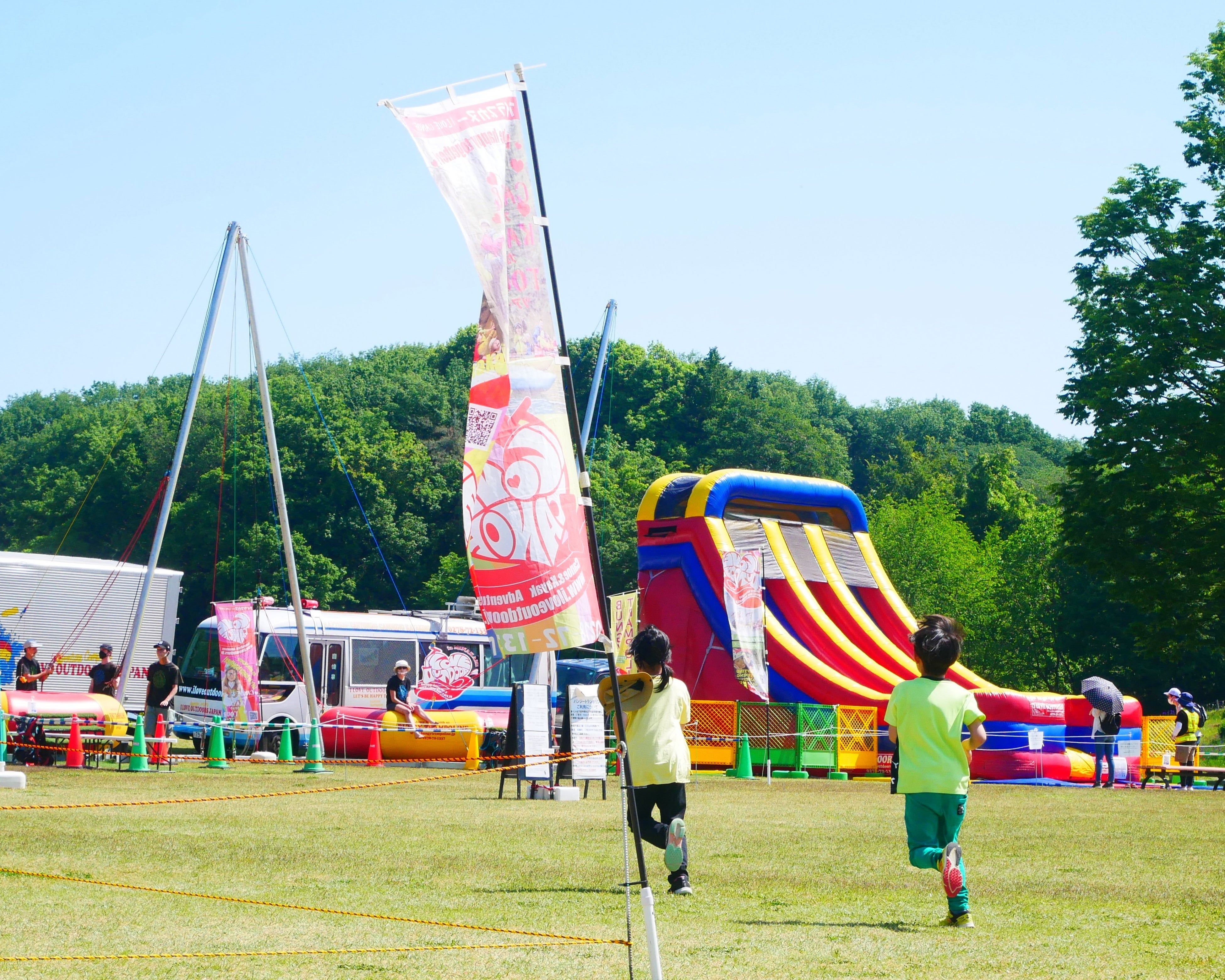 大人気のぽんぽこマウンテンがそびえたつ運動広場にて、アウトドアパーク~Spring~を開催!ラジコンカートや逆バンジー、カヌー・カヤック体験、ツリーイング体験(4/28~29)、グラススキー体験(5/3~5/5)など、自然の中で様々なアクティビティに挑戦しましょう!