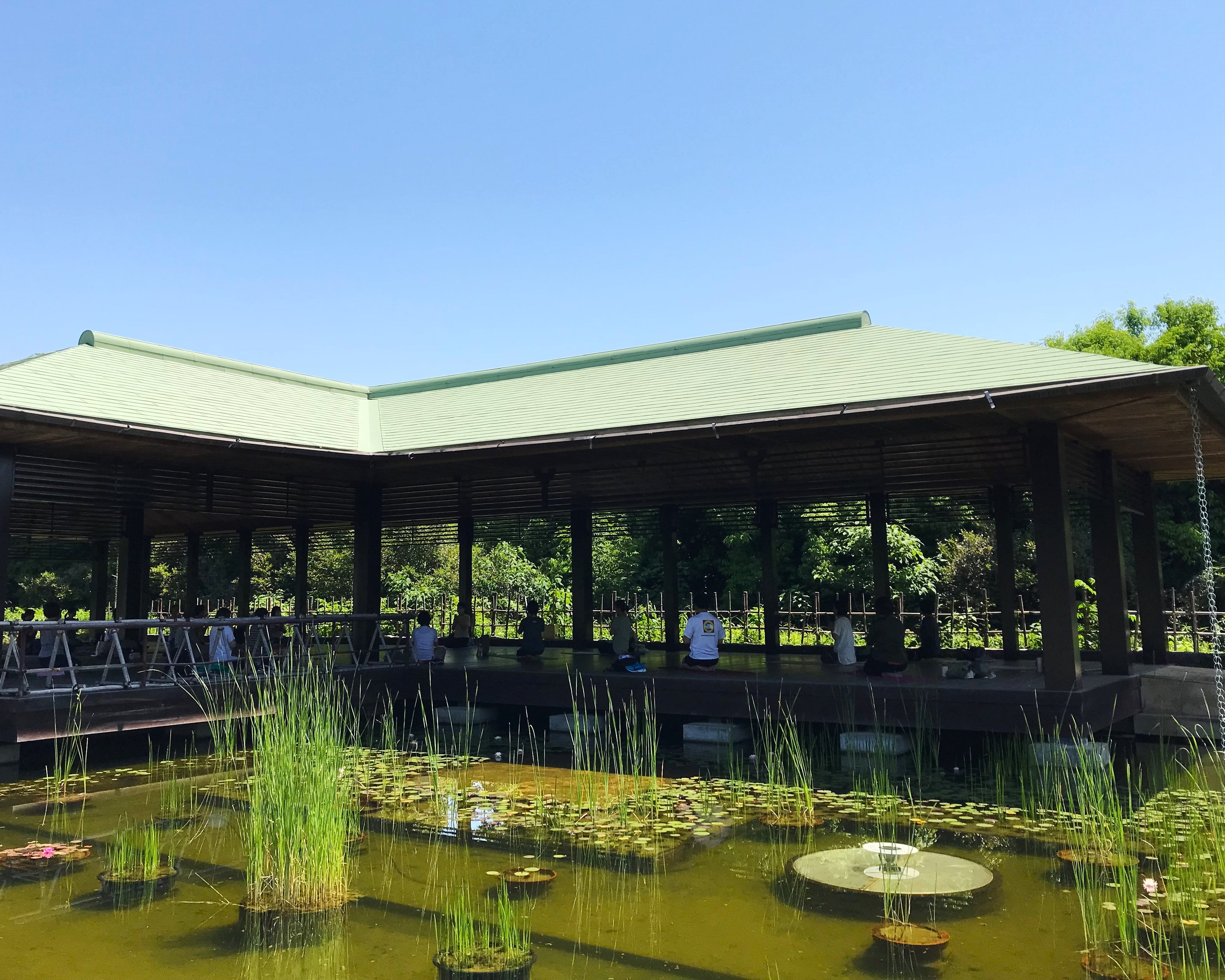 池に囲まれた能舞台の上でヨーガを行うイベントです。野鳥や草花の揺れる音を聴きながら、柔らかな風を感じながら…森林公園ならではのひと時をお過ごしください。