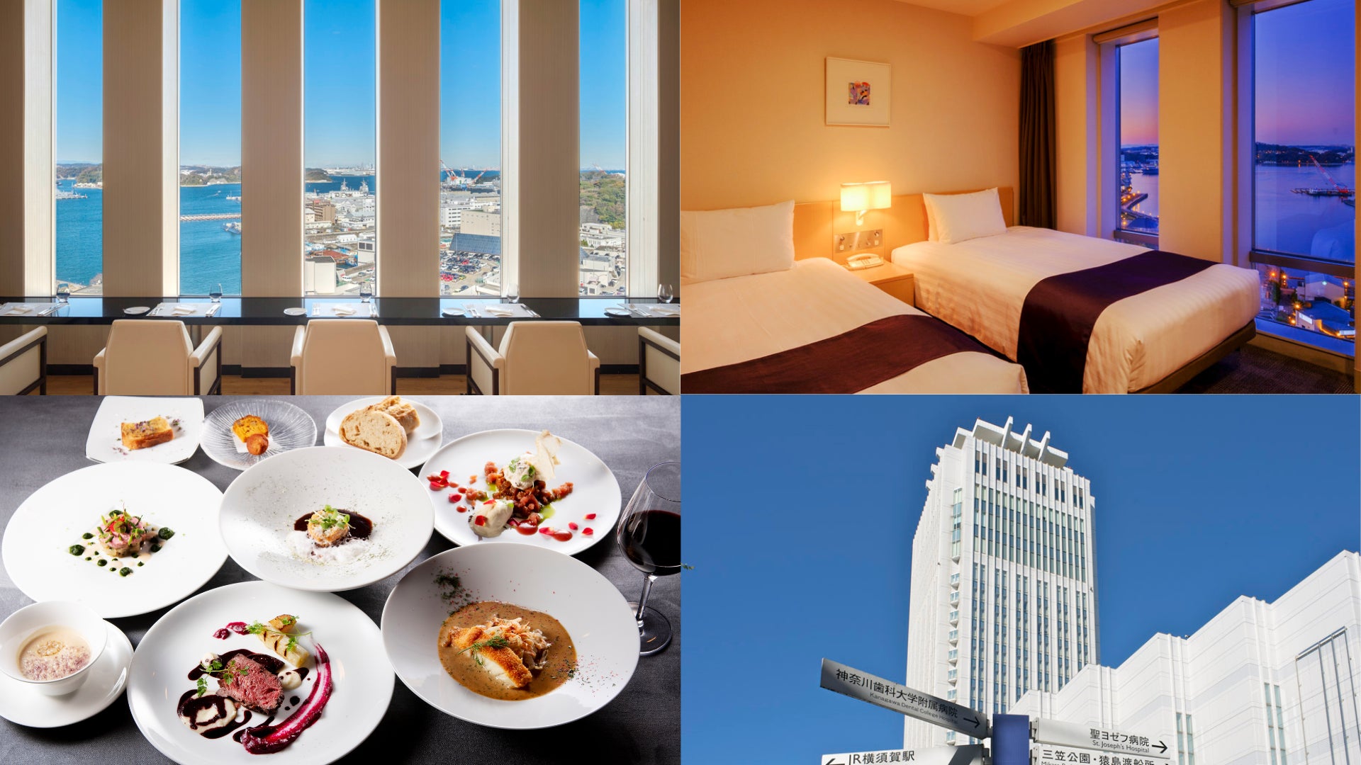 19階フレンチレストラン「ビストロ・ブルゴーニュ」では、唯⼀無⼆の横須賀港の眺望とともに、地産地消の⾷材を使ったフレンチをお楽しみいただけます。