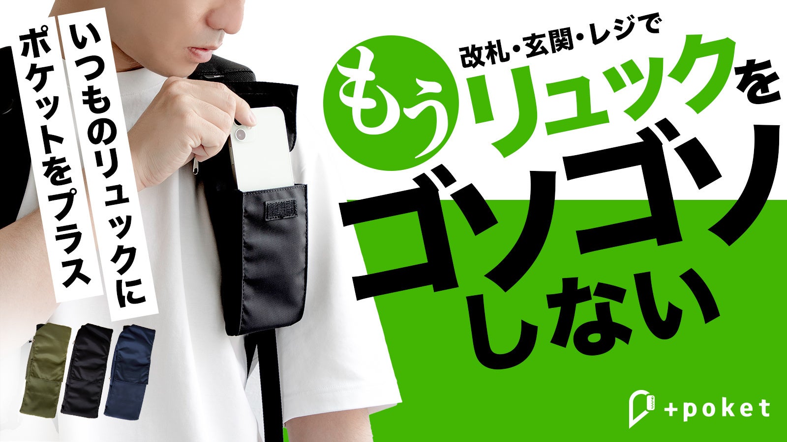 \リュックユーザーが日々抱える小さなストレスを解消する/ 通勤・通学に、旅行に出張!いつでもスマホやイヤホンがサッと取り出せる多機能バッグ【+poket】4月中旬よりプロジェクトスタート!