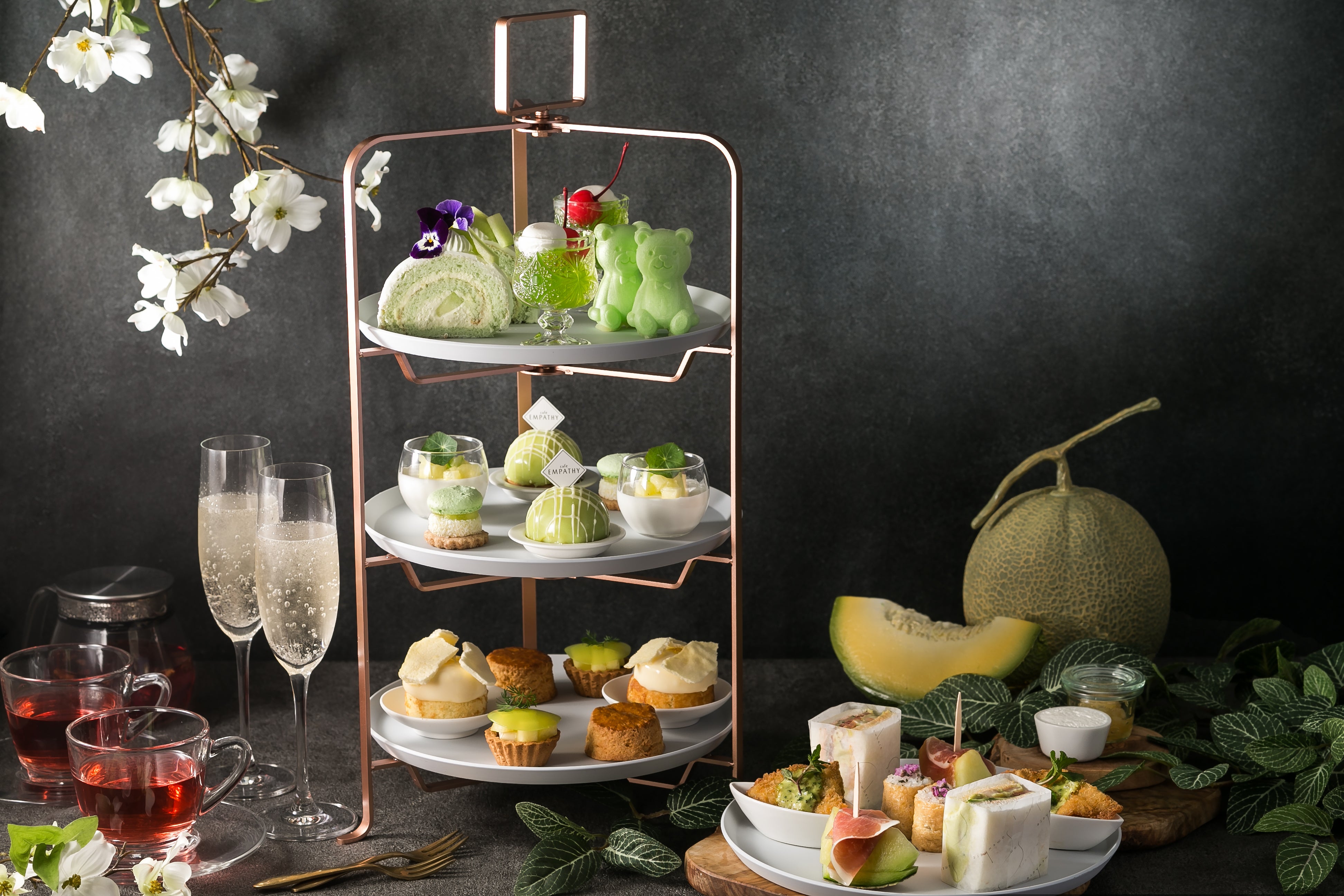 春の爽やかな木漏れ日の差し込む落ち着いたホテルのカフェラウンジで、新年度の始まりの時間をメロンの香りとともに優雅にお楽しみください。