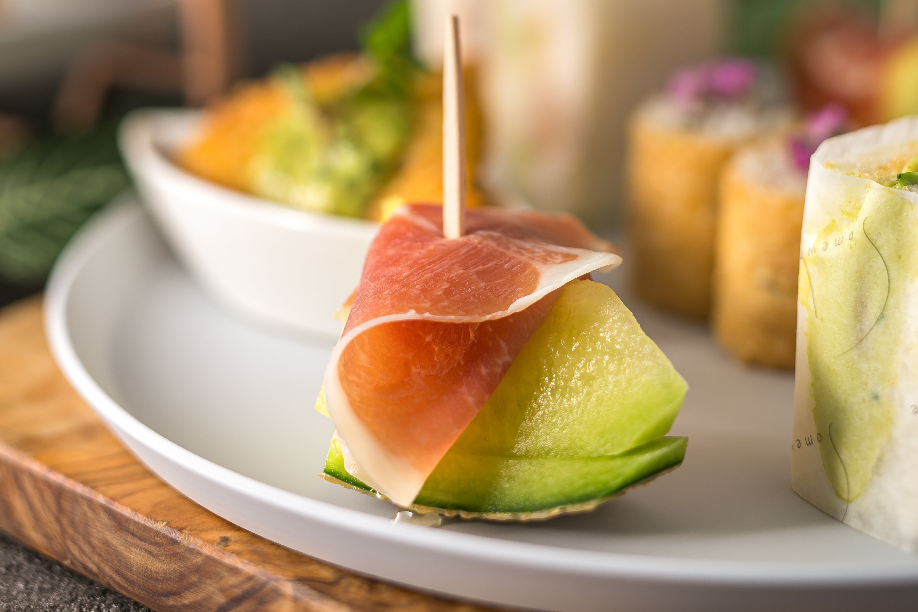 フレッシュメロンを塩気の効いた生ハムと合わせる、イタリアのオードブルの定番メニュー。