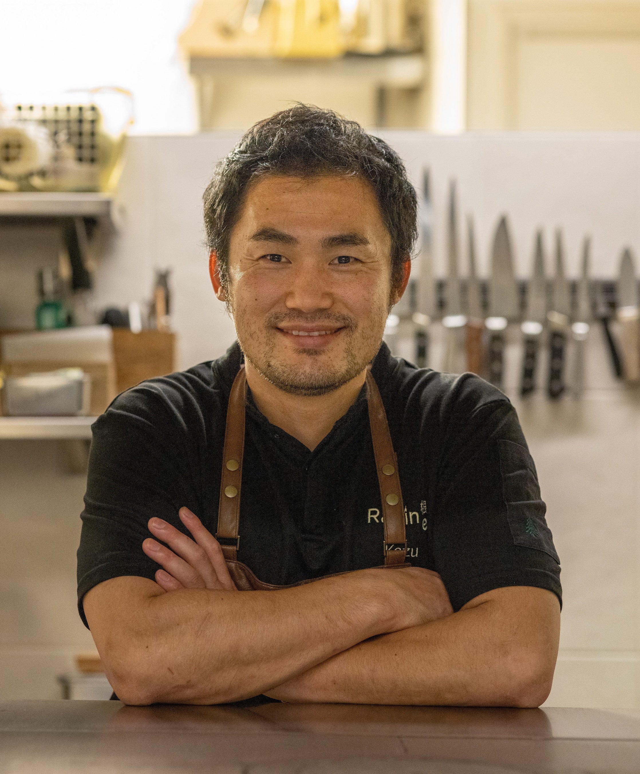 1985年、福岡県福岡市出身。ホテルニューオータニ佐賀で料理人としてスタート。2006年にフランスへ渡り、各地での修業を経て2015年「Restaurant Racine」をフランスシャンパーニュ地方ランスでオープン。味や見た目の美しさだけでなく、「驚き」も追求しつづけ、ゴ・エ・ミヨ誌で「Grand de demain」を日本人史上最年少、さらにミシュラン日本人オーナーシェフとしても史上最年少で2つ星獲得。地元ランスの人々に愛され、フランスの著名料理誌からも高い評価を得ている。