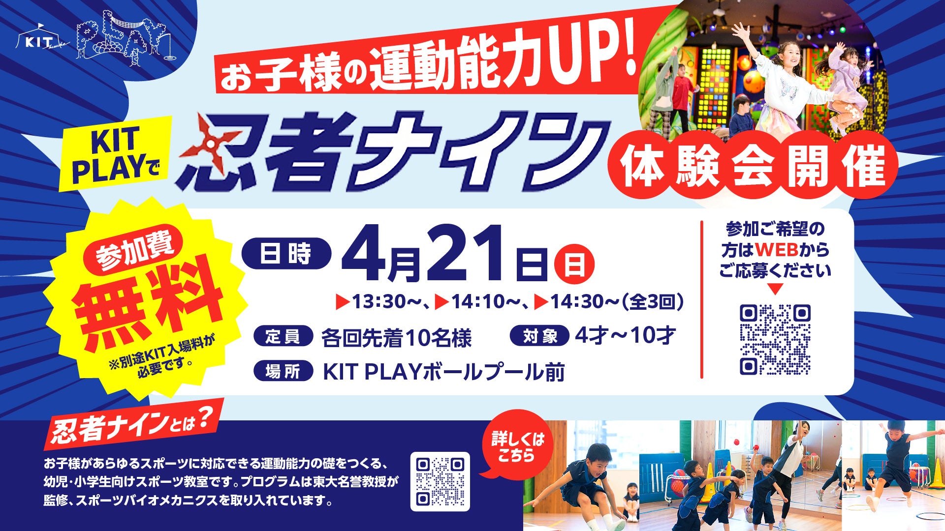 4月21日(日)に幼児・小学生向けのスポーツ教室「忍者ナイン」×KITPLAYのコラボイベントを開催。