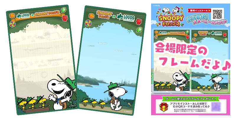 パズルゲームアプリ「スヌーピードロップス」とのコラボプリントシール機がロゴスパークに登場!イベントに来た記念に、スヌーピーとプリントシールを撮ろう♪会場限定のコラボフレームです!