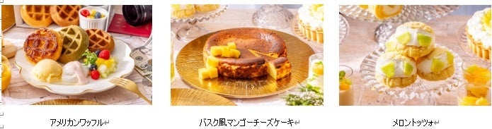 デザートはこの時期に旬を迎える、メロンとマンゴーをアレンジしてご提供します。しっとり濃厚なチーズケーキにマンゴーを合わせ、フルーティに仕上げた「バスク風マンゴーチーズケーキ」、プチメロンパンにマスカルポーネチーズを加えたホイップクリームをたっぷりサンドし、味のアクセントにフレッシュメロンをトッピングした「メロントッツォ」はぜひご賞味ください。