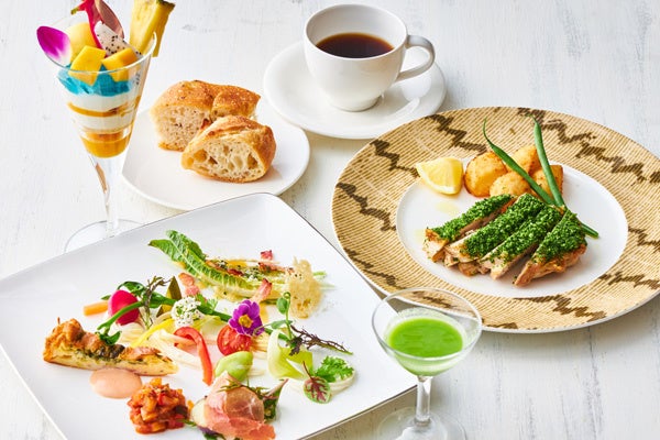 オードブルプレート/メインディッシュ(パスタ、魚料理、肉料理よりチョイス) /パフェ/小菓子/パン/コーヒー