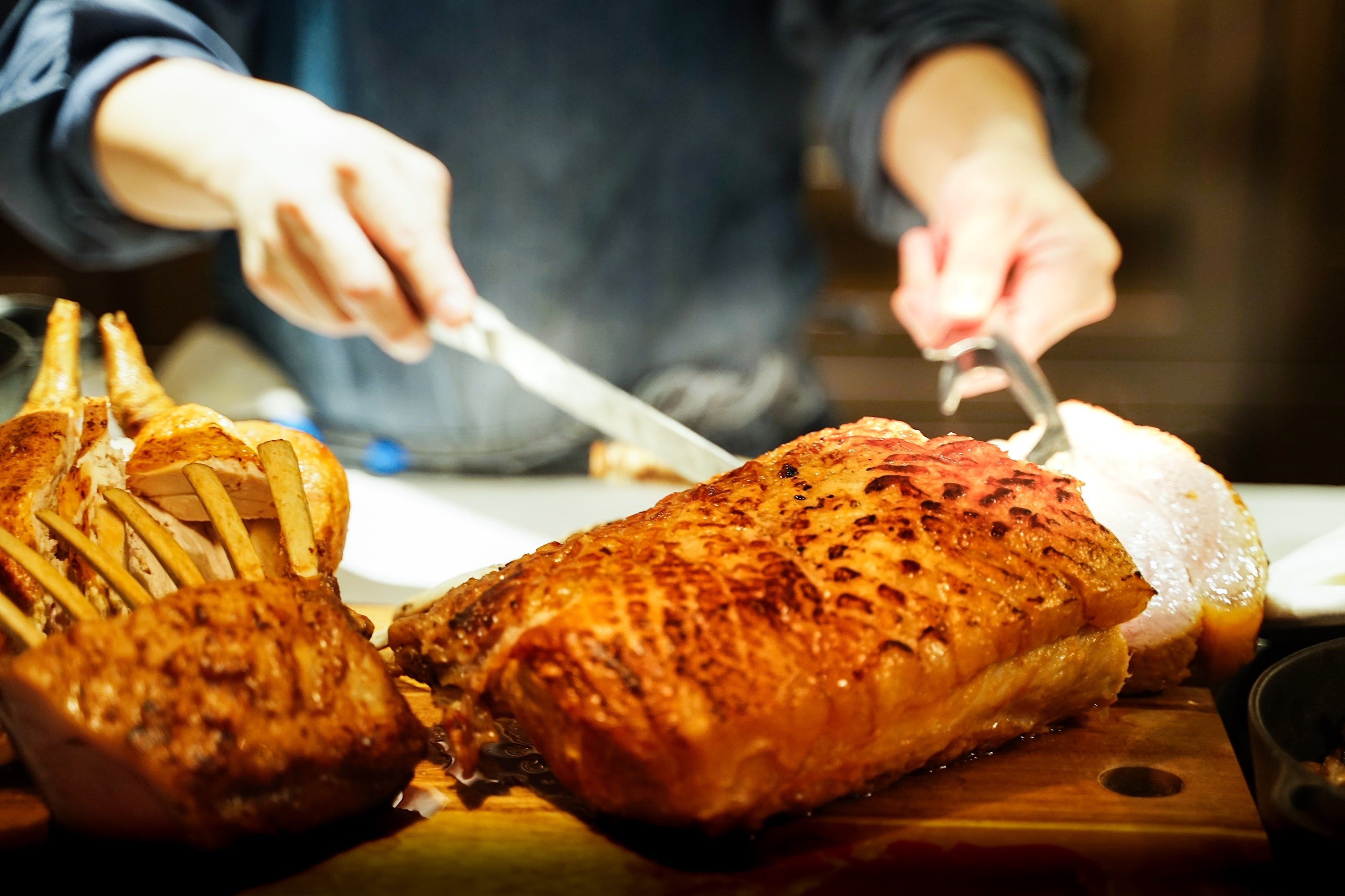 目玉となるのは、テーブルサービスでご用意する「オマール海老、ホタテ貝のパートフィロ」です。旨味たっぷりの贅沢な食材をサクサクのパイ生地で包み、焼き上げました。ビーツを使用した鮮やかなピンク色のソースと、添えられたマッシュポテトの薔薇で母の日らしく彩り豊かに仕立てています。さらに当ブッフェでは、北海道産のいくらや、ホテルオリジナルの濃厚ビーフカレー、女性に大人気のマグロポキなど贅沢なご飯のお供を豊富に取り揃えており、またお米には京都の老舗八代目儀兵衛のブレンド米を使用しています。カスタマイズしてお作りいただける自分だけの丼をお楽しみください。そのほか、母の日仕様に装飾された華やかなブッフェカウンターには和洋さまざまな料理に加え、七輪で焼き上げる焼肉カウンターや目の前で茹で上げるパスタなどライブ感のあるパフォーマンスコーナーが並びます。お好きなものをお好きなだけご堪能ください。デザートには、苺のゼリーとバラ風味のホイップが乗った花束のような「母の日タルト」もお楽しみいただけます。