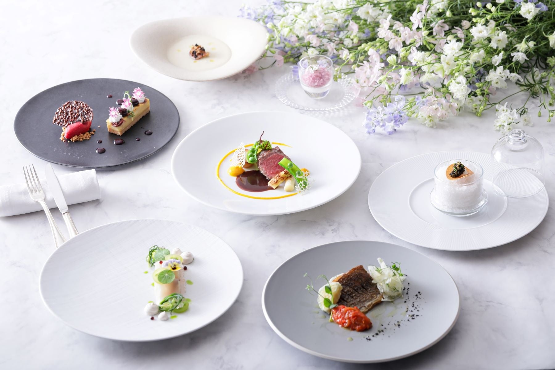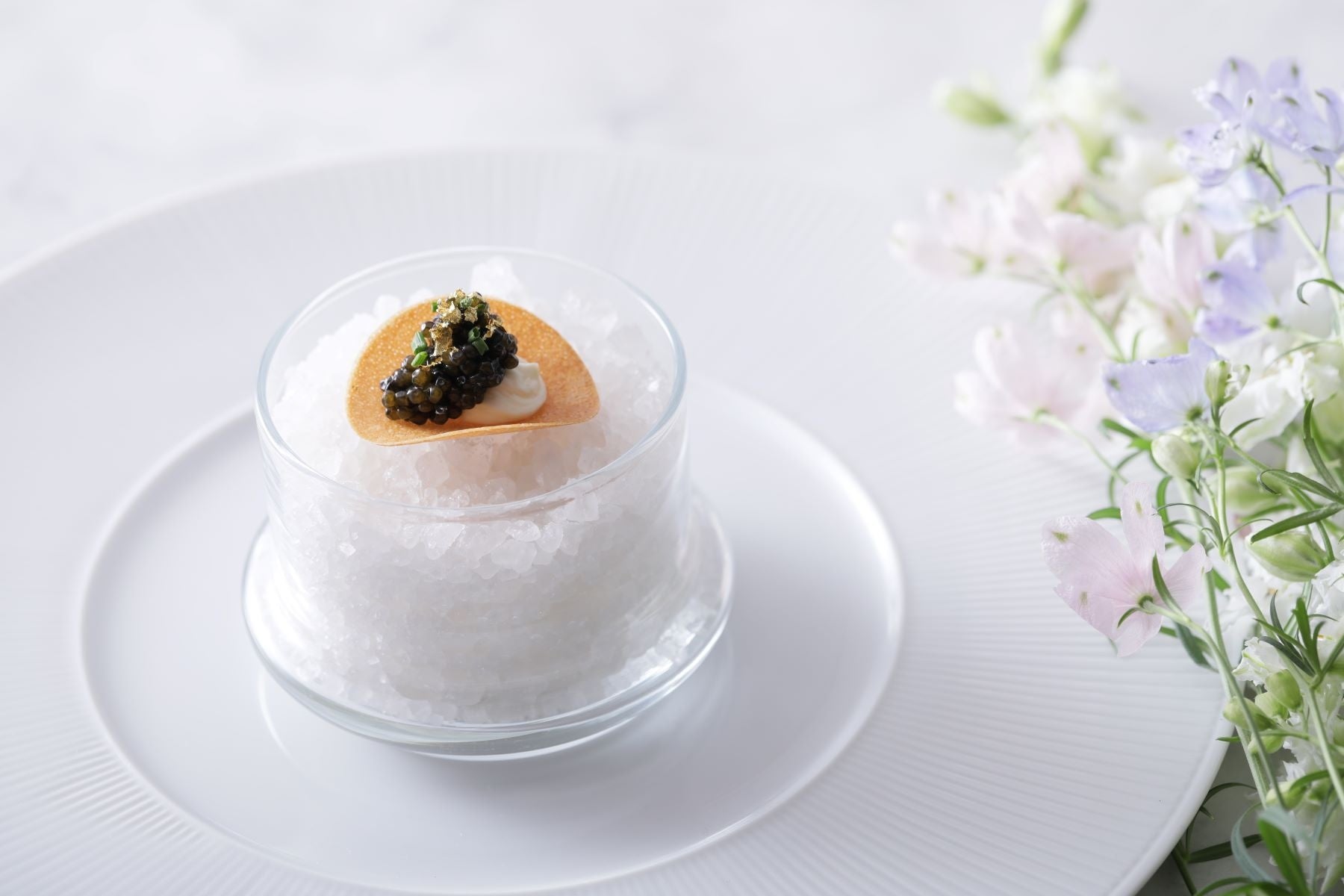 キャビアを使用した一口サイズのアミューズから始まる本コースは、フォアグラやトリュフを使用した新玉葱のスープ、やわらかな肉質と程よい甘さの脂肪バランスにより口いっぱいに旨味が広がる知多和牛「誉」のロティなど、高級感と非日常の味わいを堪能いただけます。色彩豊かなで食材を活かした繊細な味とテクスチャーの、絶妙なハーモニーをお楽しみください。