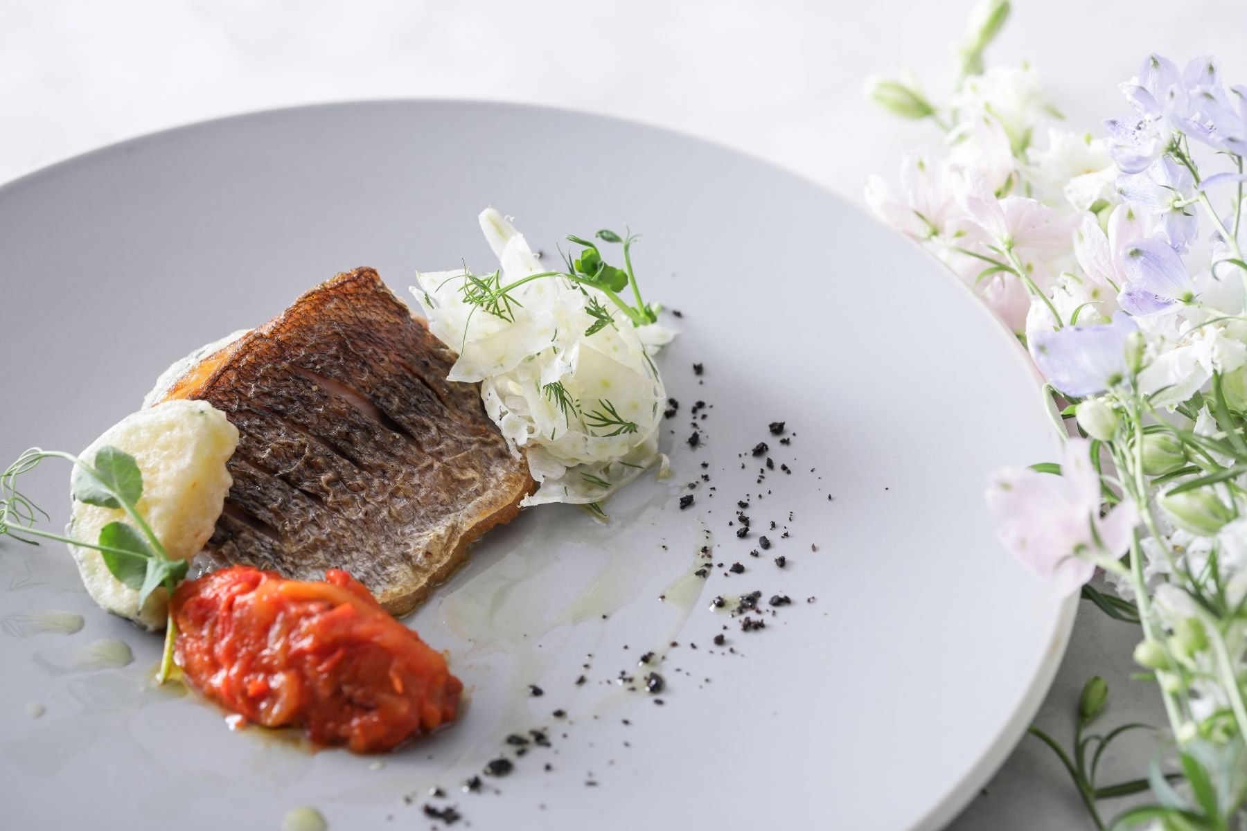 三重県産イサキのポワレ ズッキーニのベニエとピペラードと共に