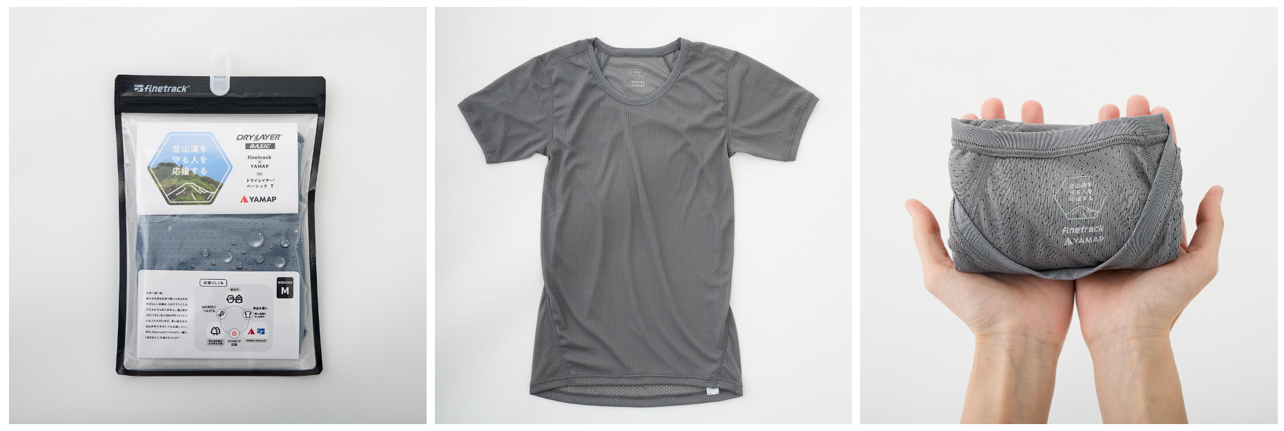 撥水加工が施されたメッシュ生地が汗を速やかに肌から離し、濡れやベタつき、汗冷えを防いでくれる高機能アンダーウェアを購入することで、登山道を守る人を応援する「着る支援」につながる商品となっています。