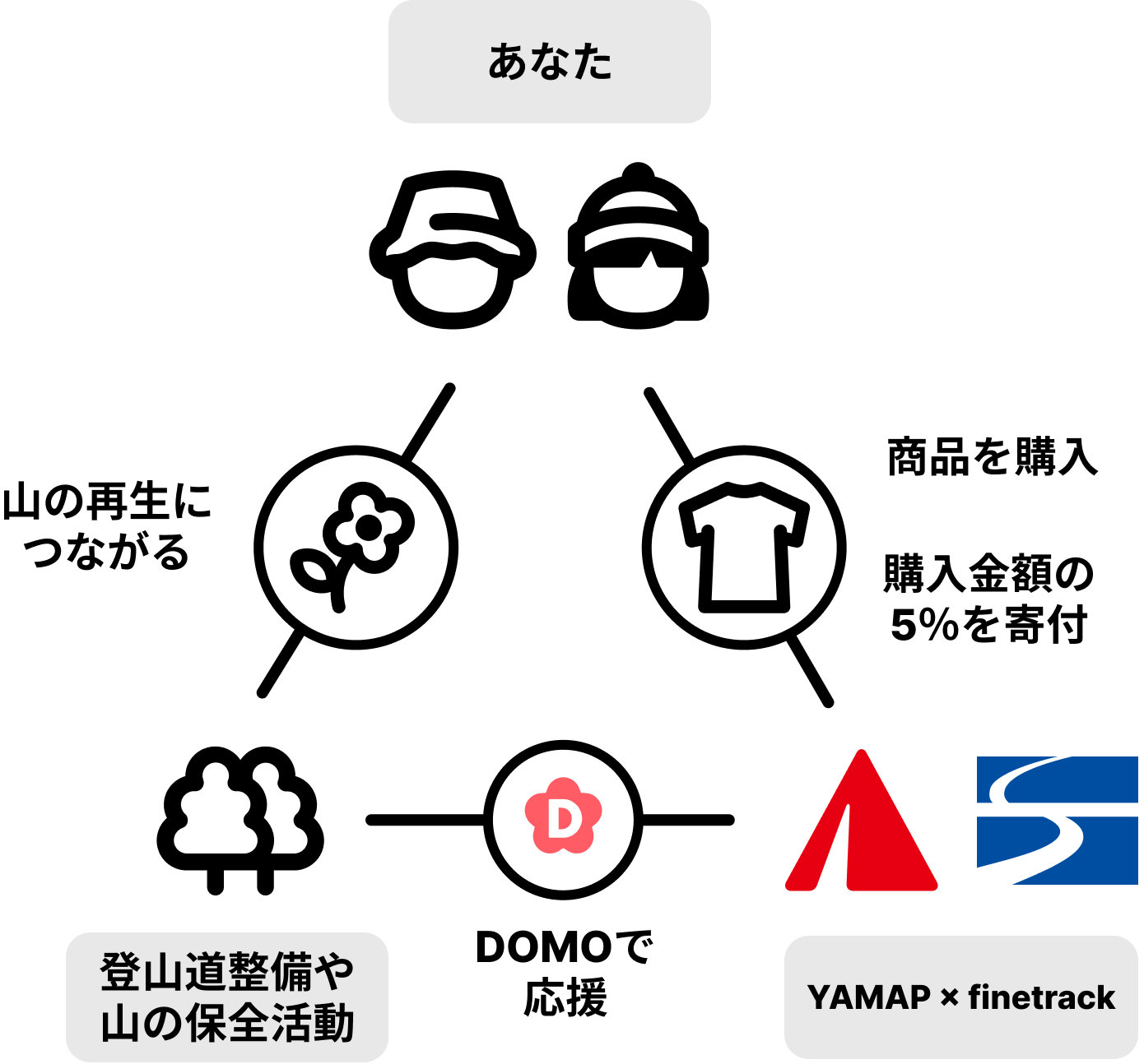 今回の商品「finetrack × YAMAP別注 ドライレイヤーベーシックT」では、この仕組みを利用して、登山道整備団体に売上の一部を寄付いたします。