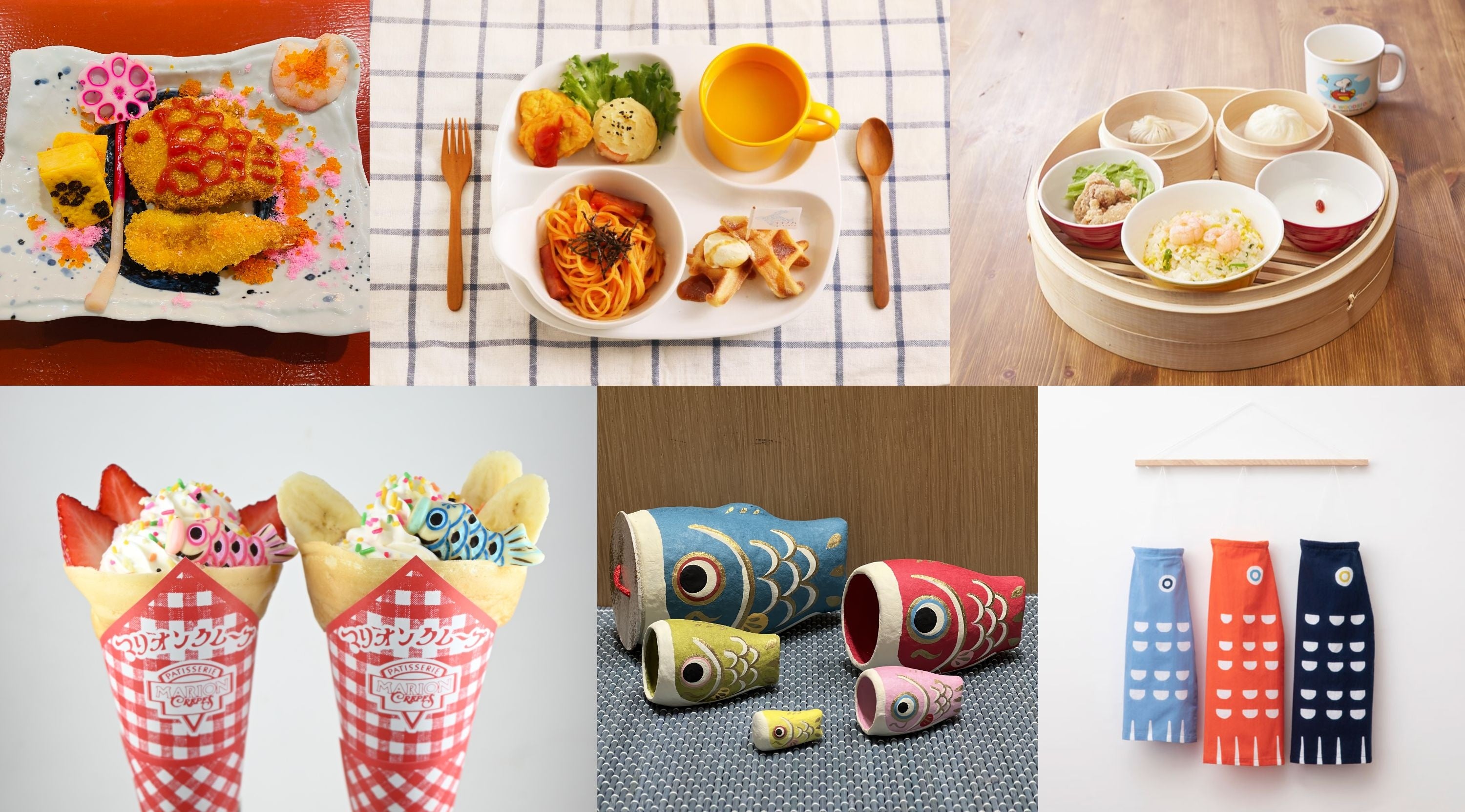 タペストリーのようなこいのぼりや、マトリョーシカタイプのこいのぼりなど、一味違ったこいのぼりも登場。クレープやコロッケなど見た目もかわいいこいのぼりをモチーフにしたメニューで、お子さまの健やかな成長を願いましょう。