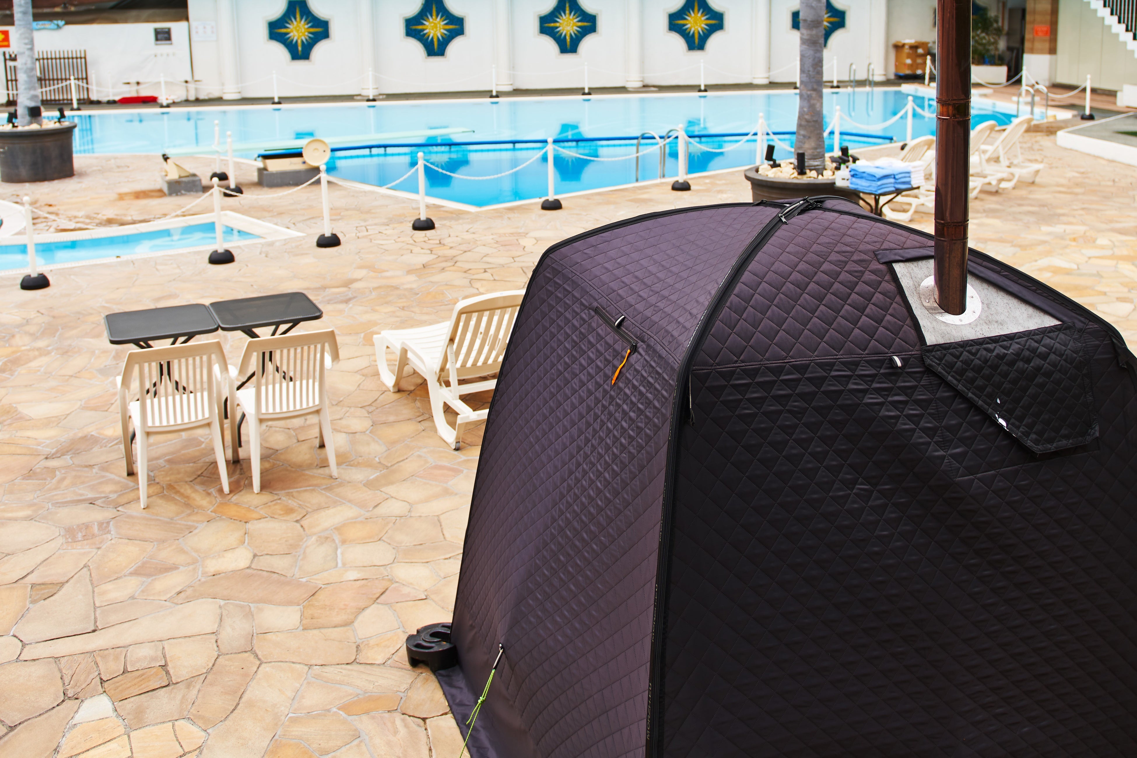 常にスチームを噴出することで、テントサウナの気圧をコントロールし、外から流入するフレッシュエアを持続させ、通常のサウナでは体験することが難しい極上の“熱々潤々”で呼吸のしやすい空間を実現。また、過熱水蒸気にサウナストーンから発生する輻射熱を入れ込むことにより体感温度が向上。そのため、身体の内外から効率良く深部体温を温めることができ、今までにないサウナを体感いただけます。